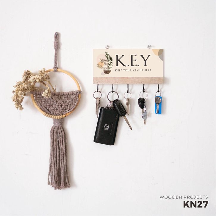 Wooden Projects Tempat Gantungan Kunci Keychain Organizer Rumah-KN27