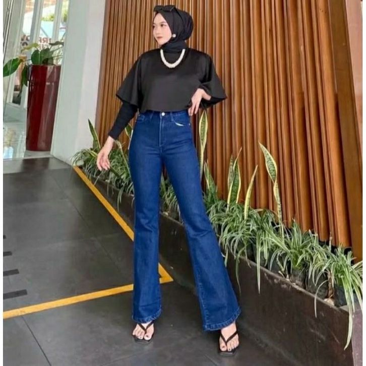 Ready Celana Cutbray Jeans Wanita Highwaist Loose Kekinian