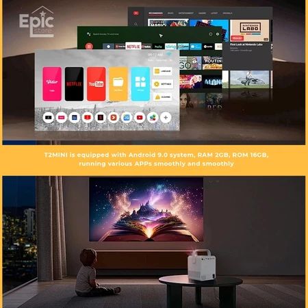 T2mini Proyektor Android TV 1080P Smart Projector 6000 Lumen Android 9.0 Ram 2G Rom 16G proyektor mini portable hp Home