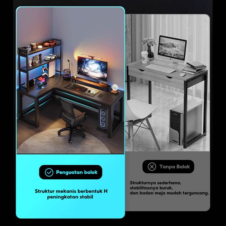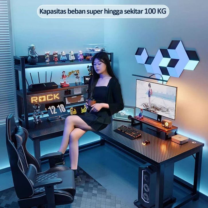 KUCADI Meja Gaming Pola Fiber Karbon Meja Kerja Meja Komputer Meja Belajar Meja Laptop [ Garansi lima tahun ]