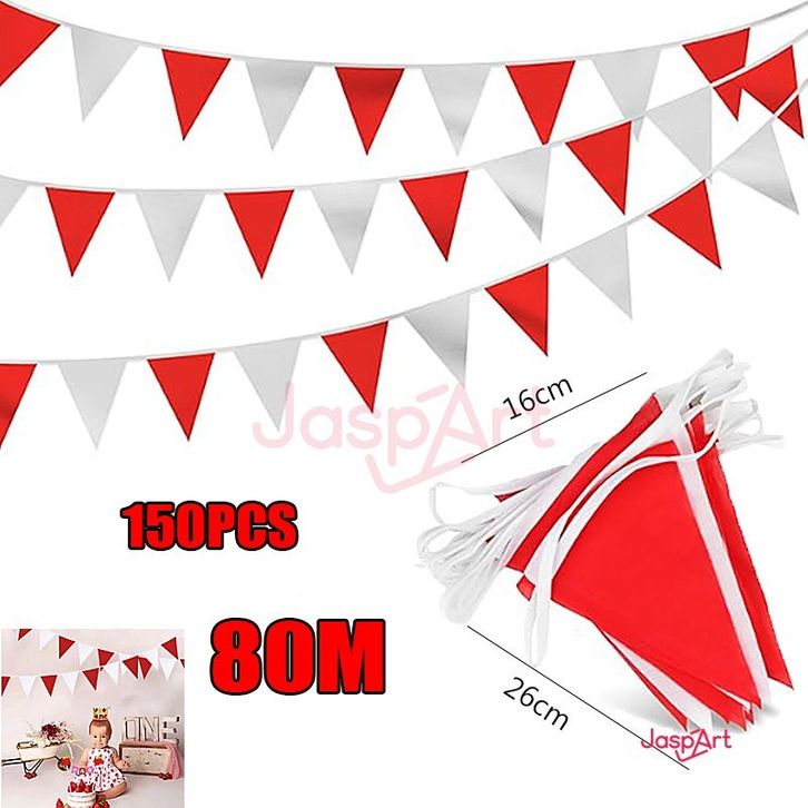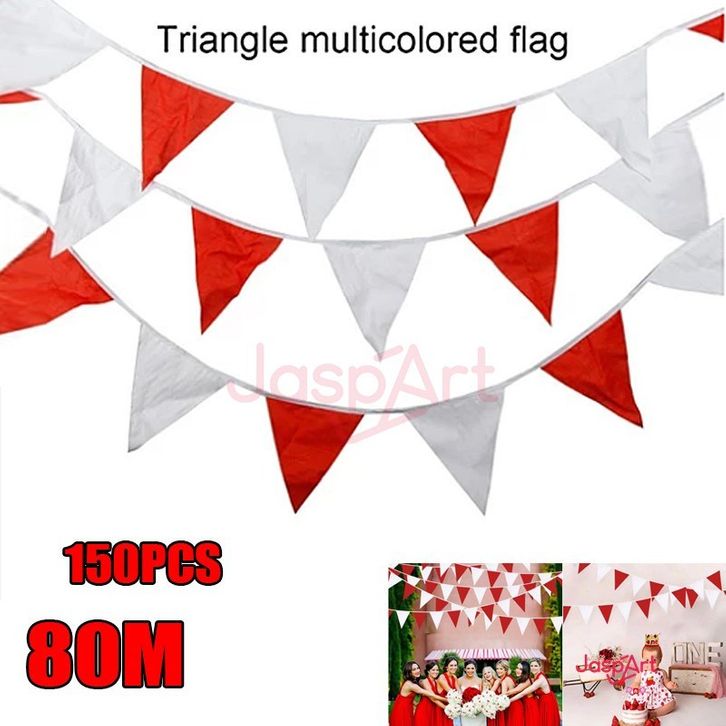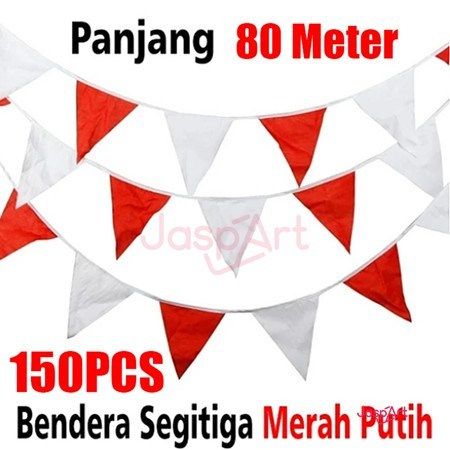 150Pcs/80 Meter Bendera Kain Segitiga Merah Putih - Umbul-Umbul Bendera Segitiga Kain 65 Meter