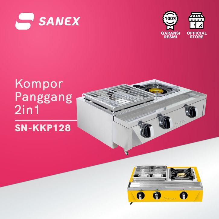 SANEX Kompor Gas dan Panggang 2 in 1 SN-KKP128 KOMPOR GAS 2 TUNGKU KOMPOR GAS DAN PANGGANGAN KOMPOR GAS PANGGANGAN SOSIS