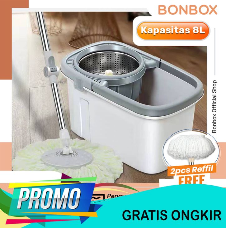 BARU Bonbox Alat Pel Lantai Ember 2 in 1 FREE KAIN PEL CADANGAN Kain Fiber dengan Ember Spin Mop Mencuci dan