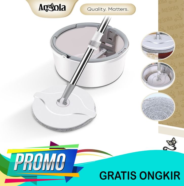 BARU ANGOLA Spin Mop D31 Alat Pel Lantai Kain Pel Alat Pembersih Praktis Pel-pelan Otomatis