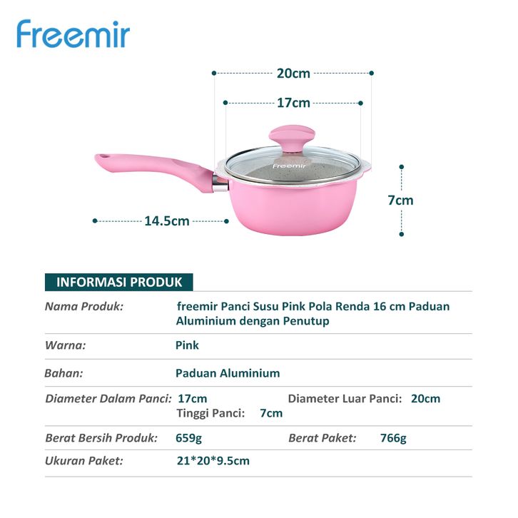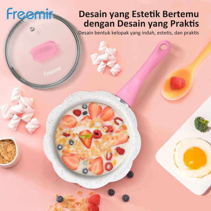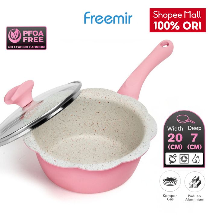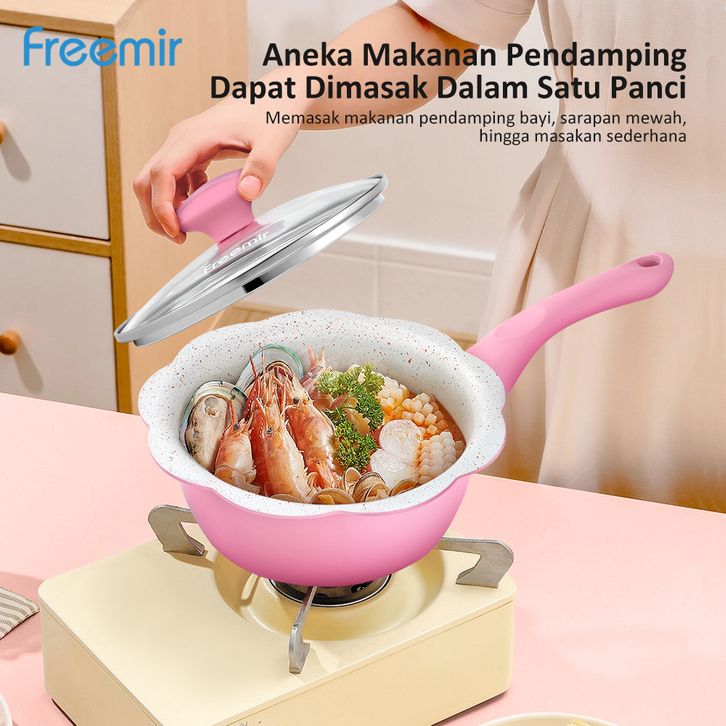 GRATIS ONGKIR Panci Mpasi Bayi Freemir Panci Bunga Pink 16 Cm Tutup Kaca Anti Lengket Anti Karat Panci Serbaguna