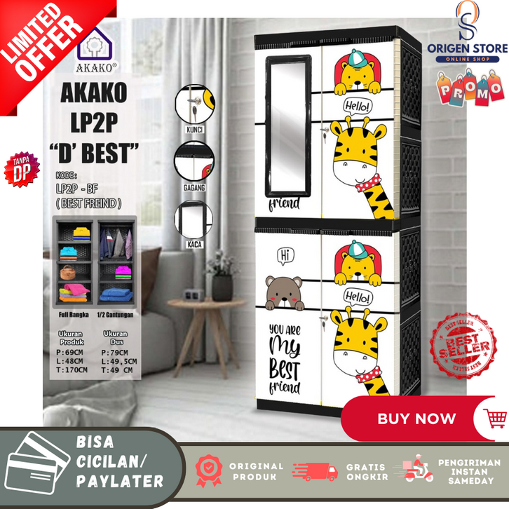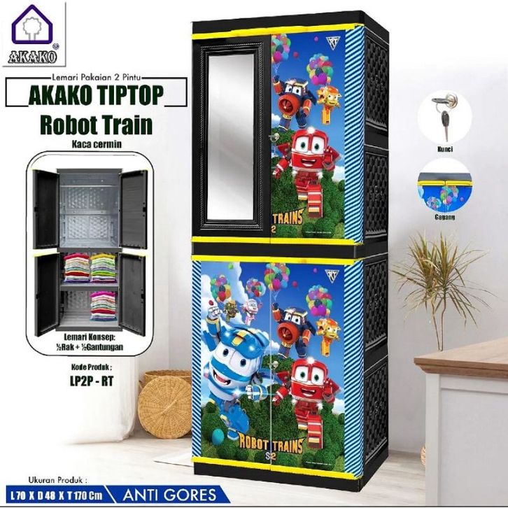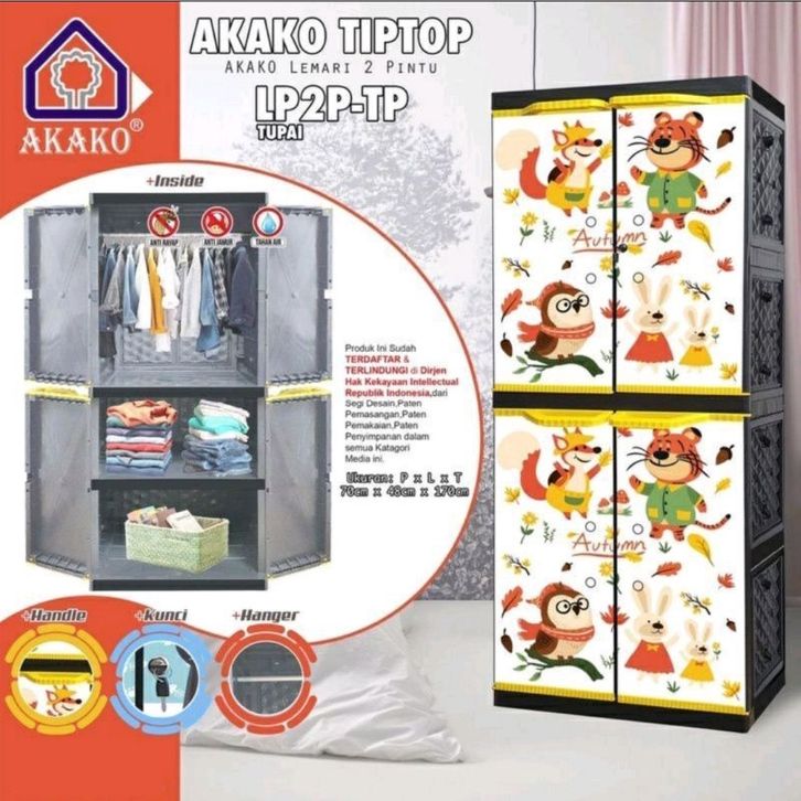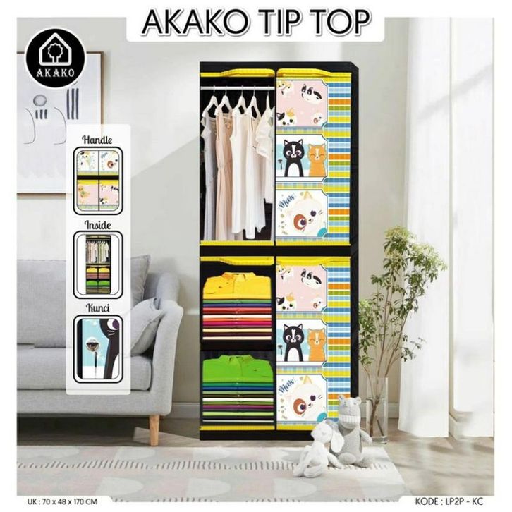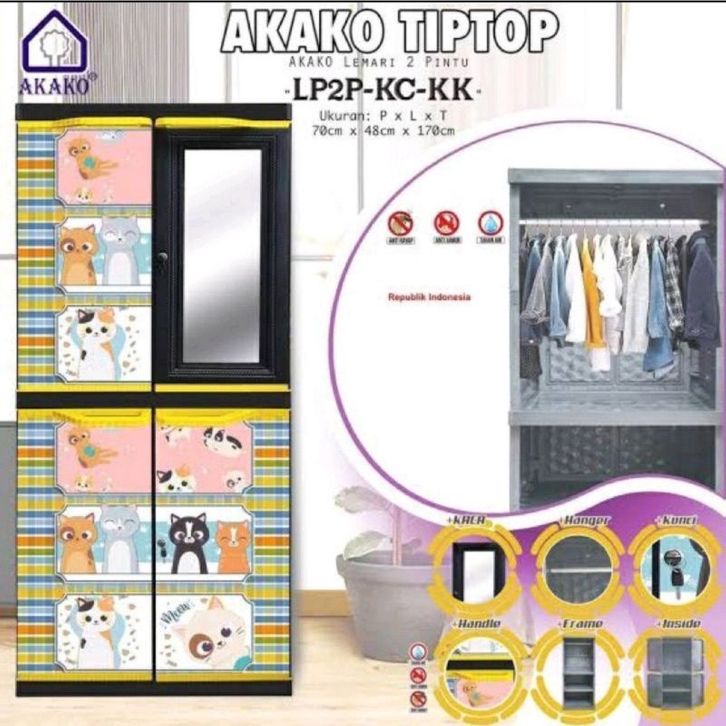 GRATIS ONGKIR-Lemari Pakaian Plastik Akako Tiptop JUMBO 2 Pintu Motif Gantung Rak Kaca