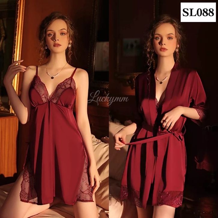 Kimono Lingerie Satin Silk Baju Tidur Wanita Dewasa / Kimono Lingerie 2in1 / Sleepwear Kimono 88