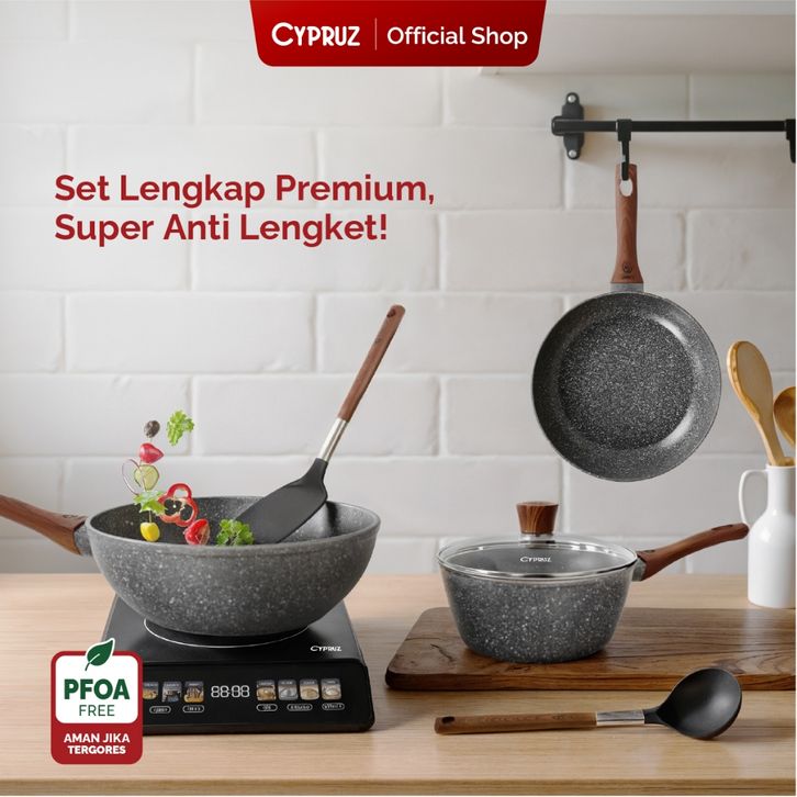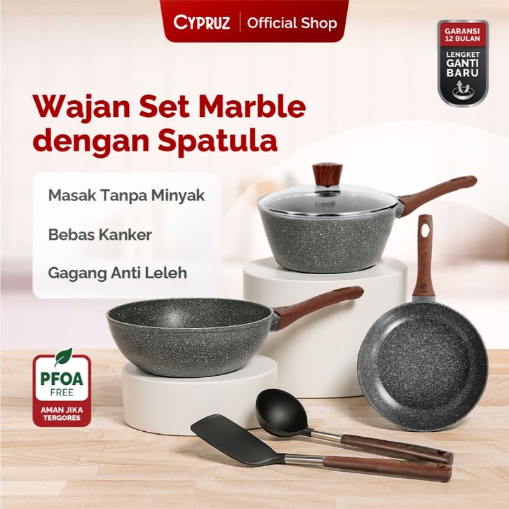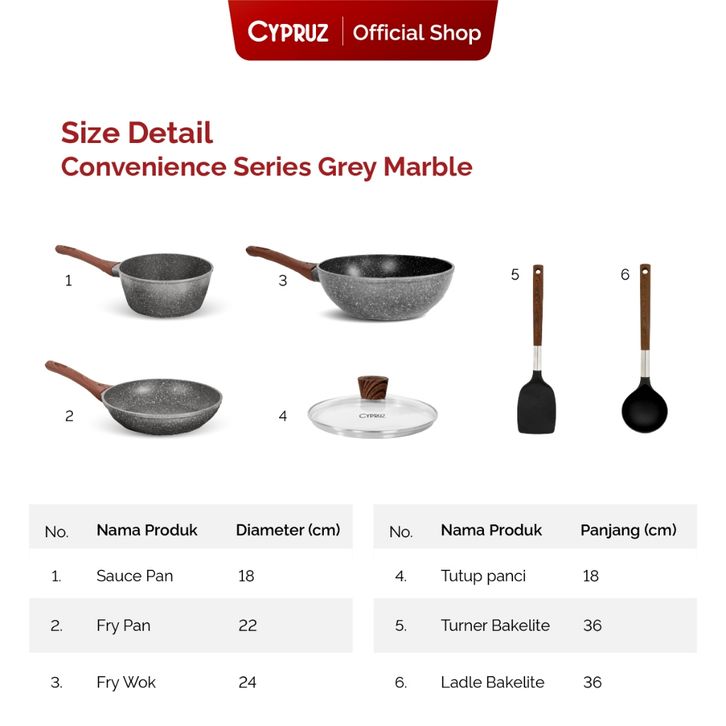 mall inline badgeCypruz Cookware Set Grey Marble Convenience Series Panci Set Premium Anti Lengket 6 Pcs