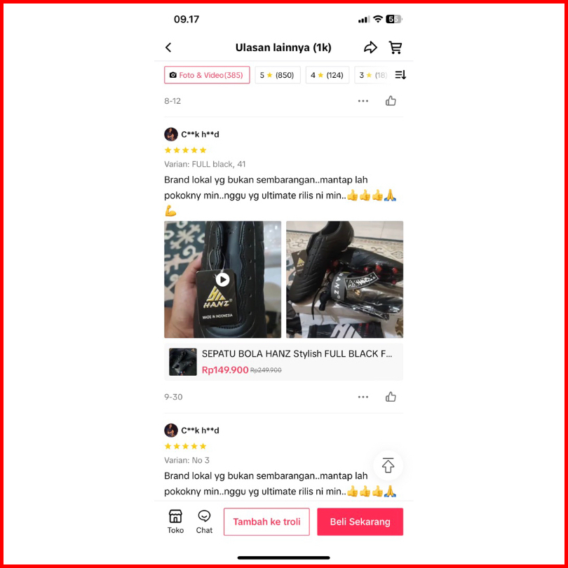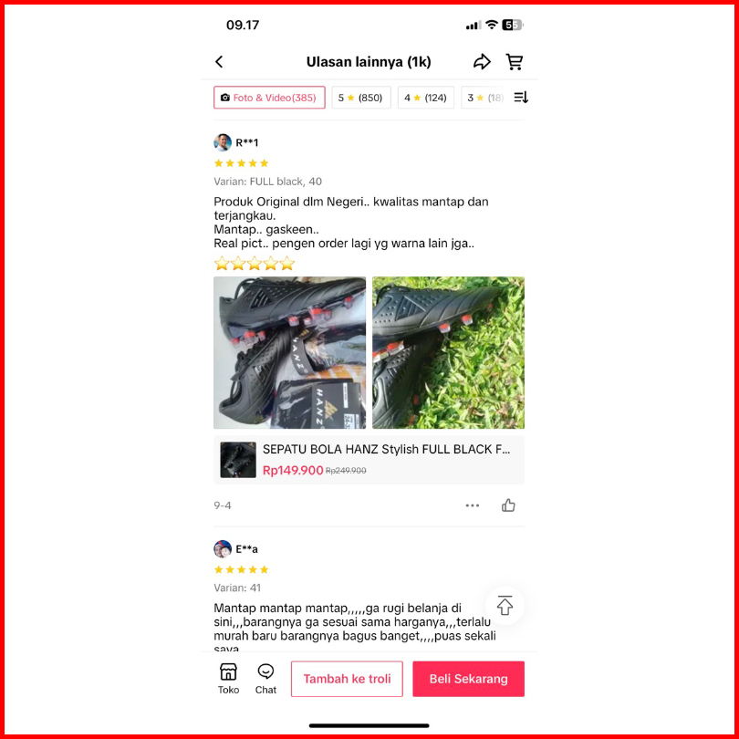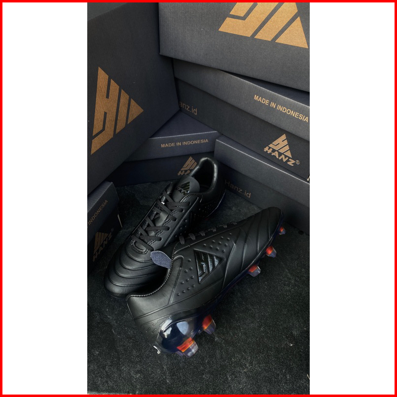 Hanz - Sepatu Bola Hanz Stylish Fg Full Black - Free Kaos Kaki Deker