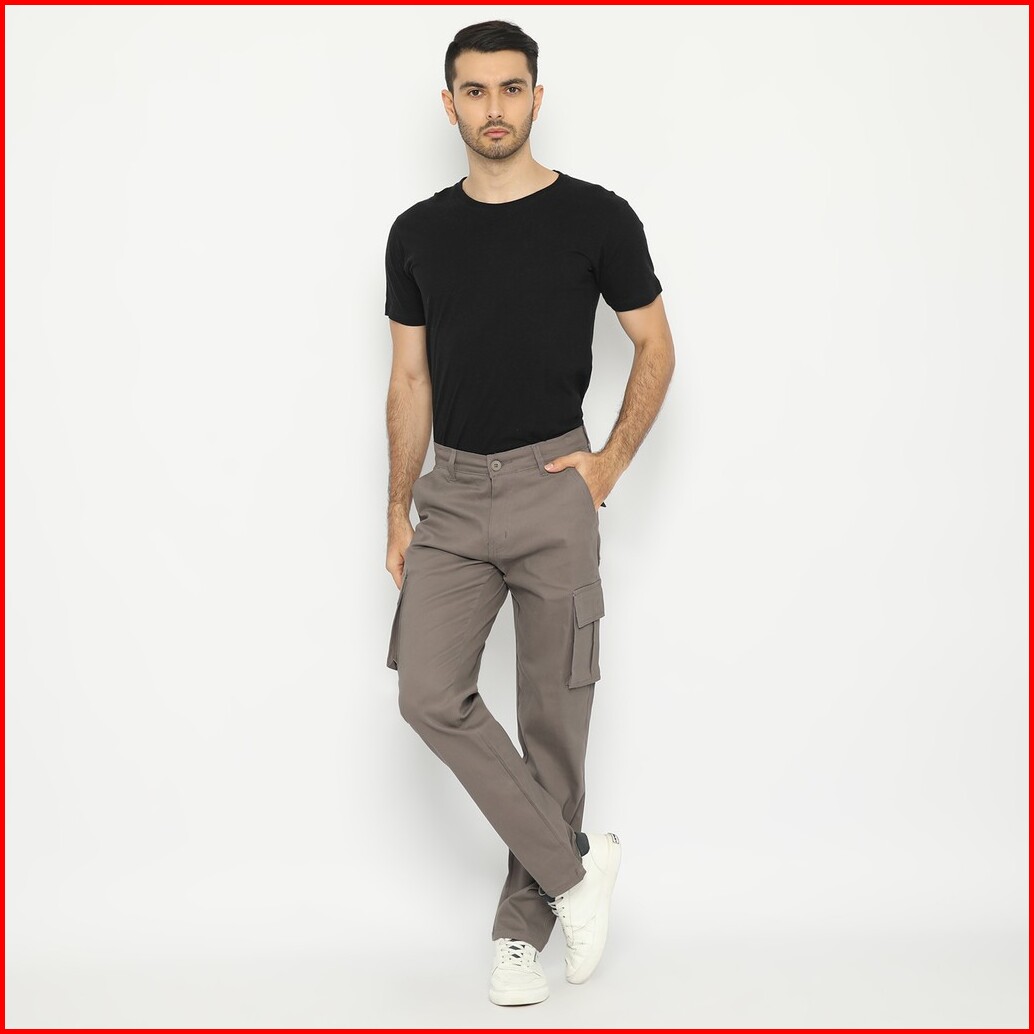 Fichino Cargo Pants Celana Cargo Panjang Pria Albus Light Grey - Chicago Series - Stretch