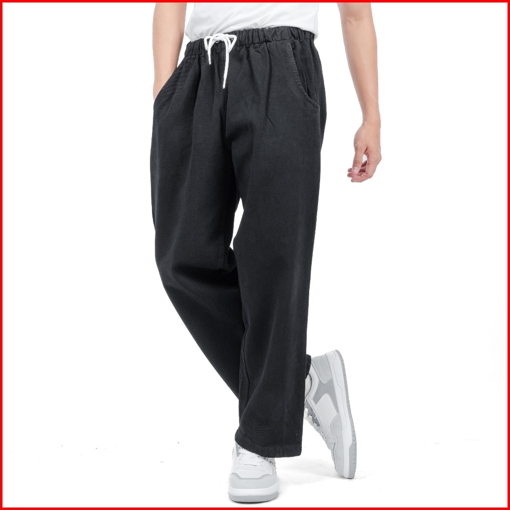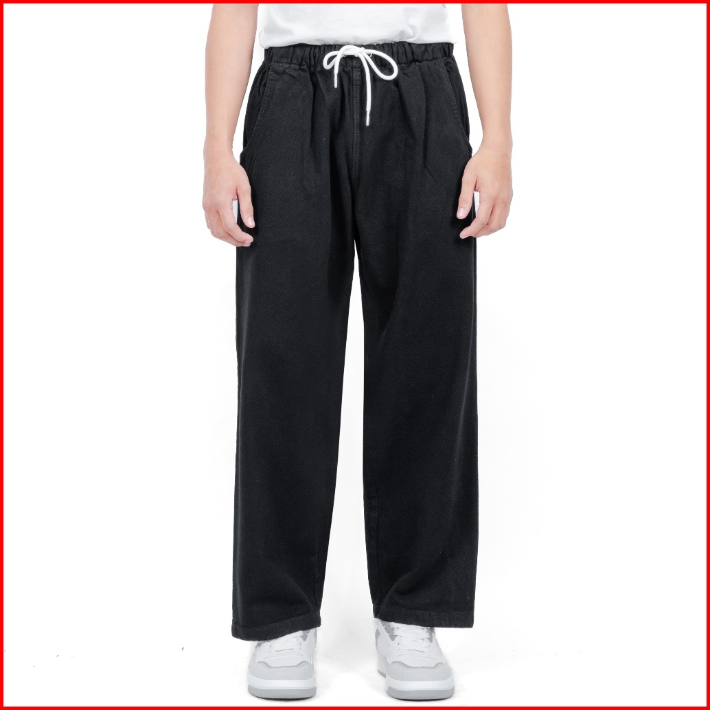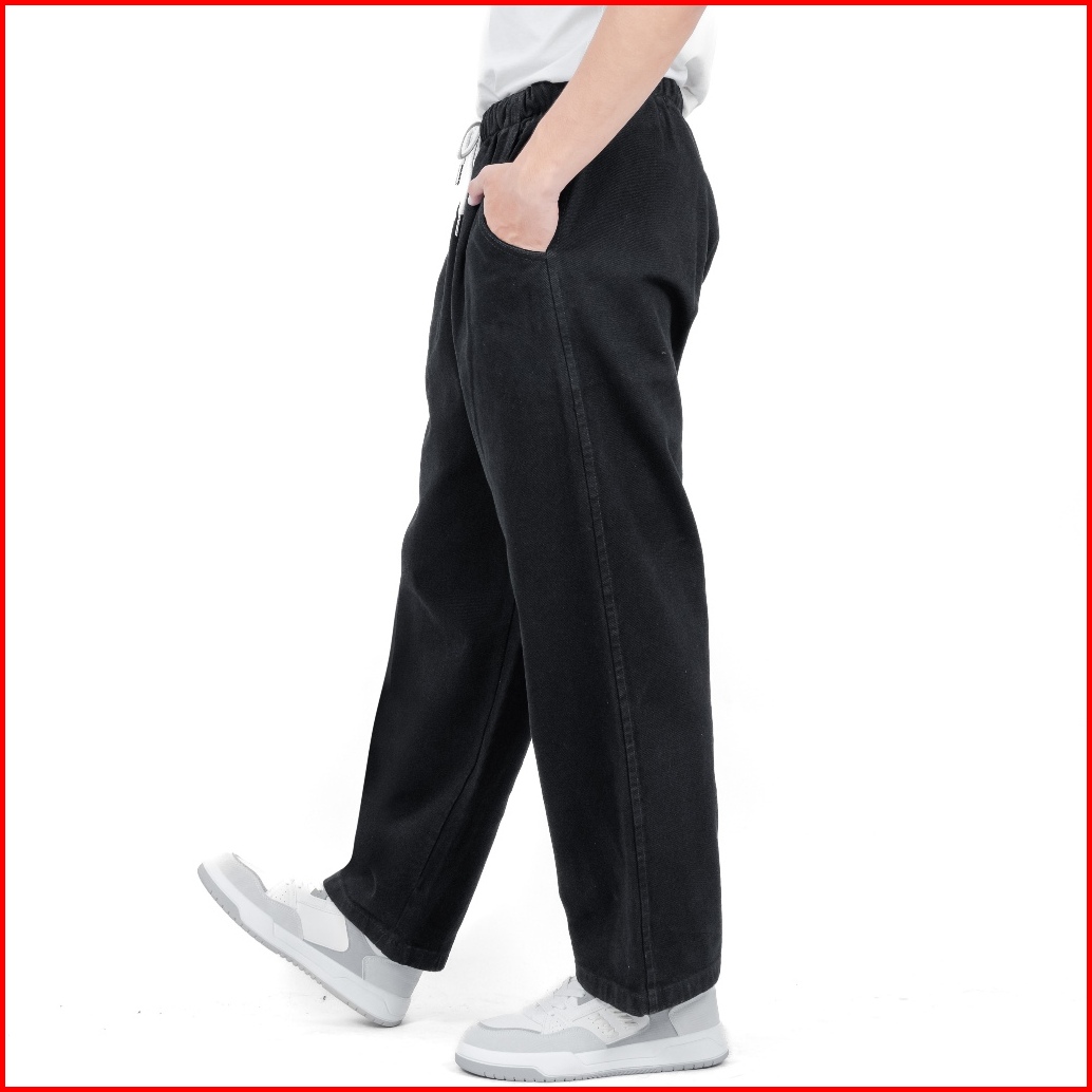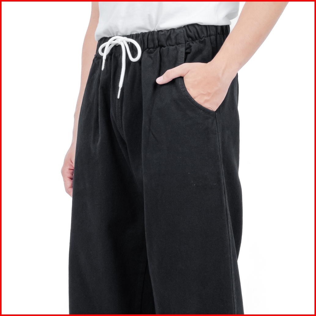Gizmo - Baggy Pants Relaxed Jeans Celana Baggy Gombrong Karet Pinggang Oversize Denim Black