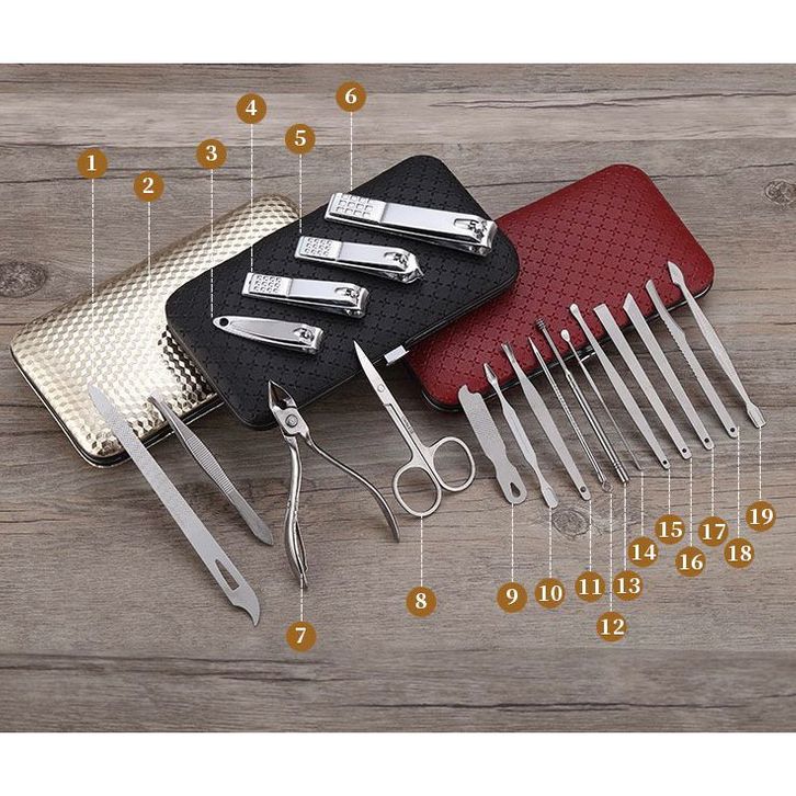 Gunting Kuku Set 19 in 1 Stainless Original, Alat Menicure Pedicure Set, Alat Perawatan Kuku, Nail Art Set Lengkap, Alat