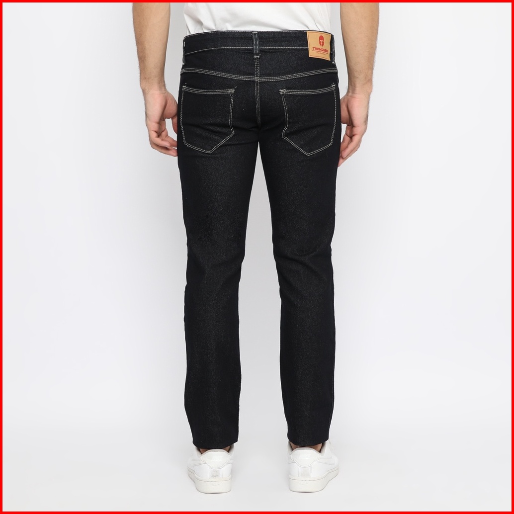 Trondheim Celana Jeans Long Pants Denim Pria Foe Black Indigo Sticth White