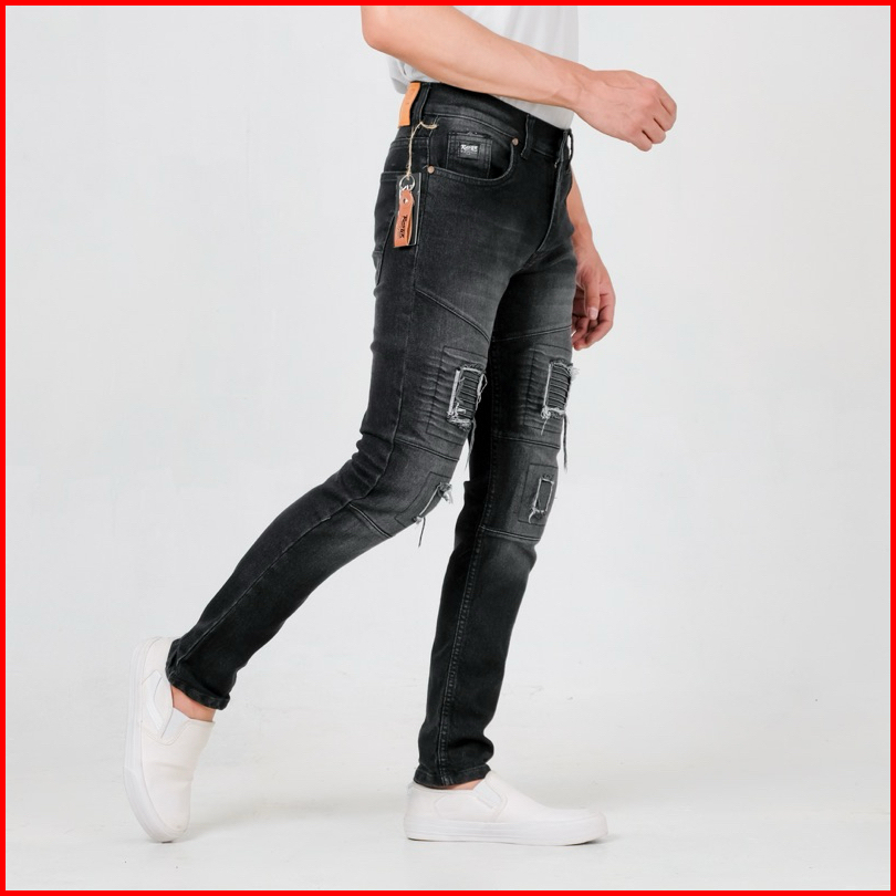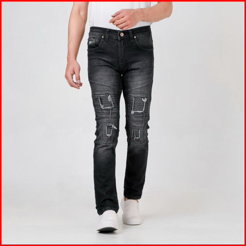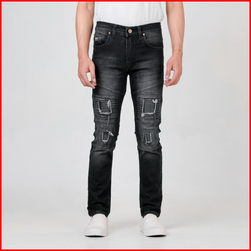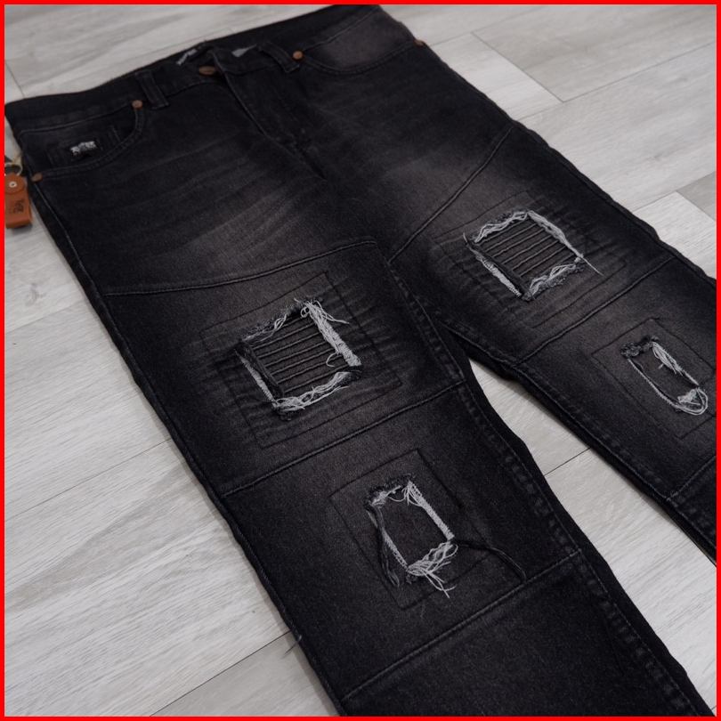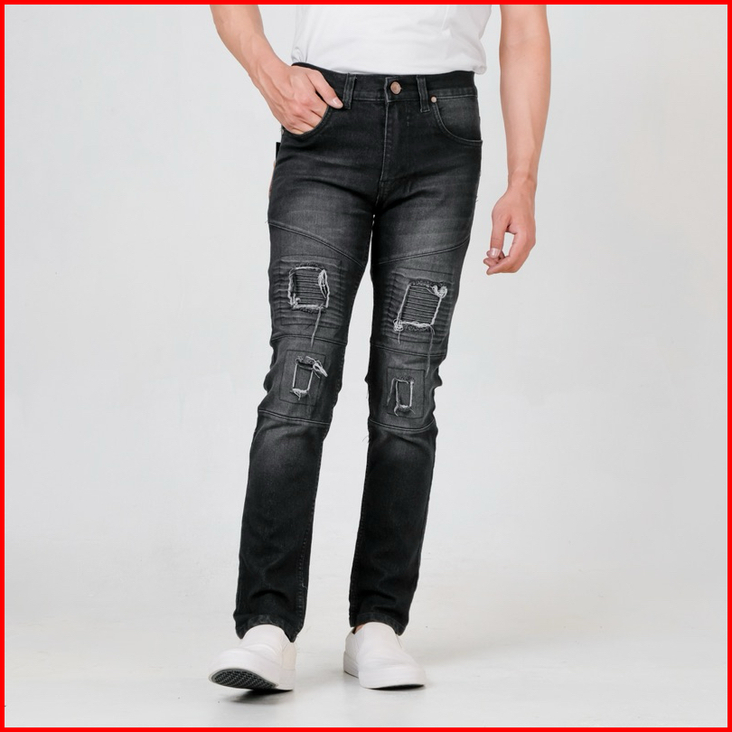 Roosterdenim - Sbk Cubit Celana Panjang Sobek Pria Bikers Ripped Blackwash Hitss