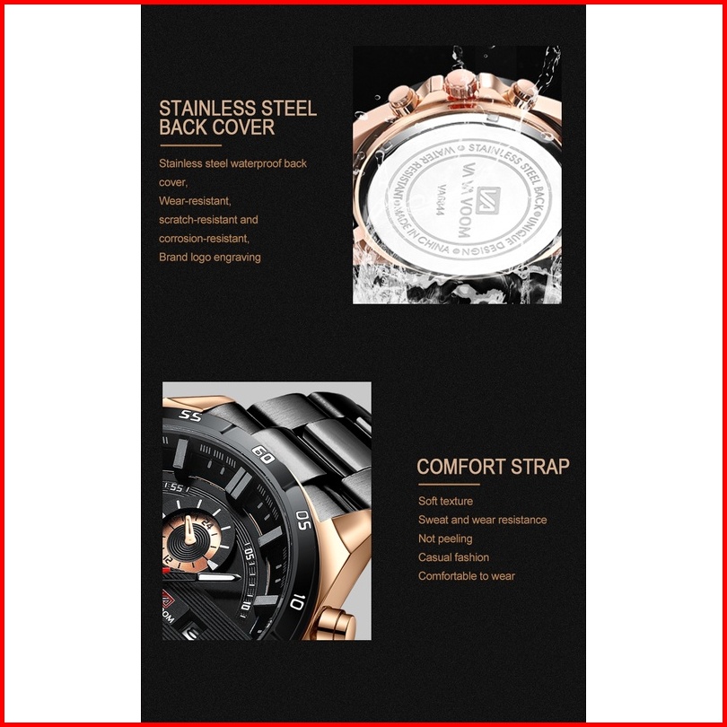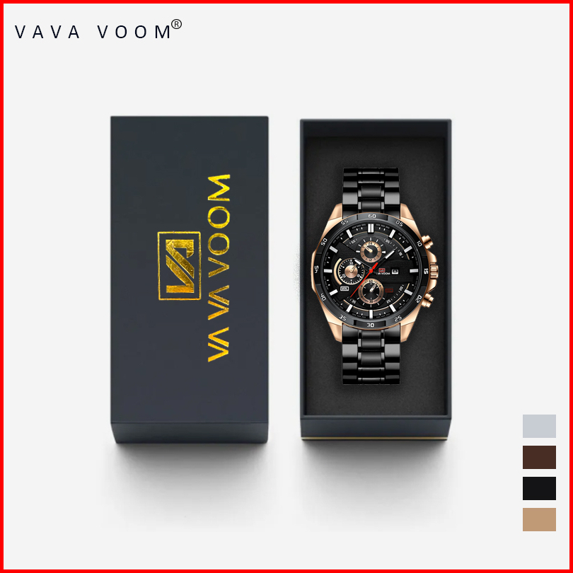 Va Va Voom 216g Jam Tangan Pria Kronograf Luxury Stainless Steel Analog Quartz Original Tahan Air Watch Kotak Gratis