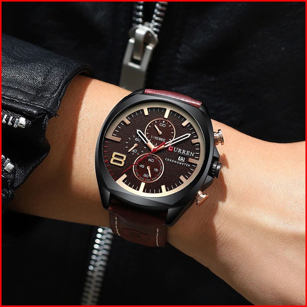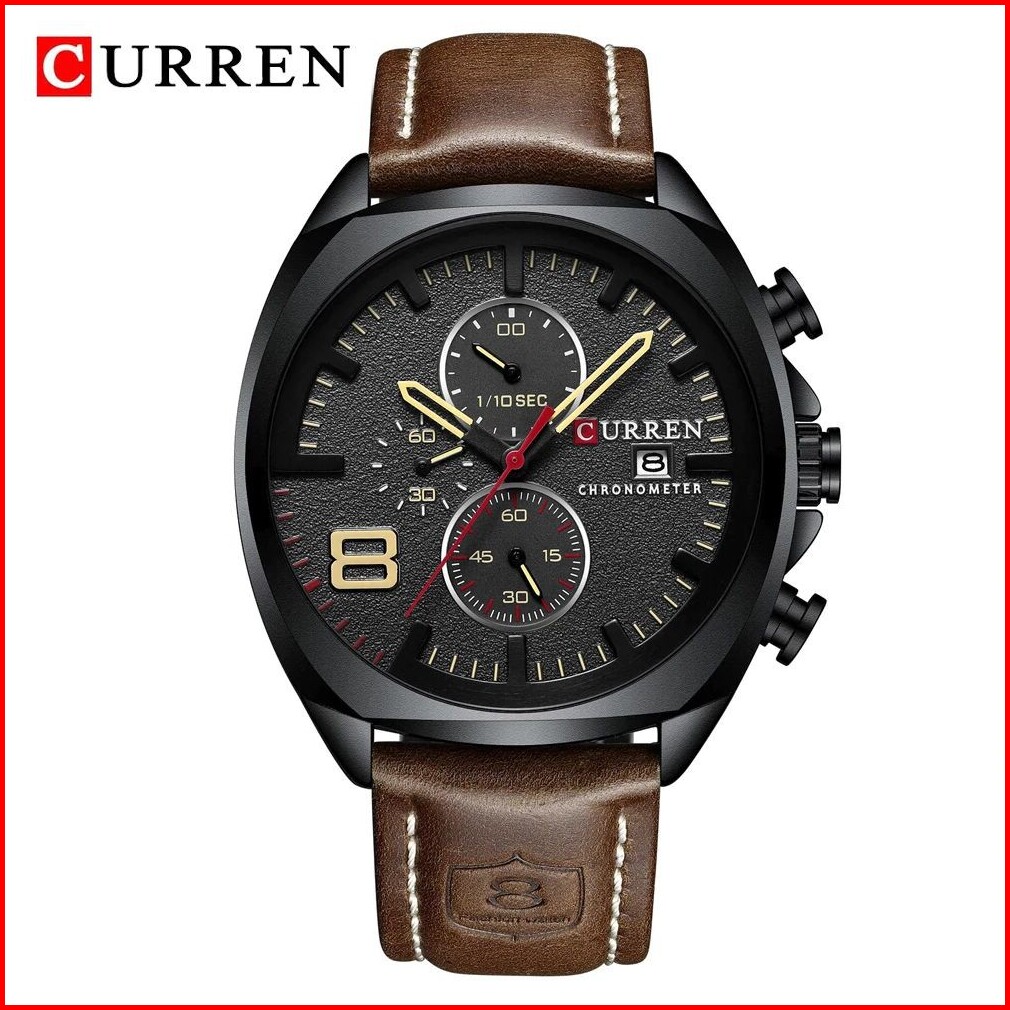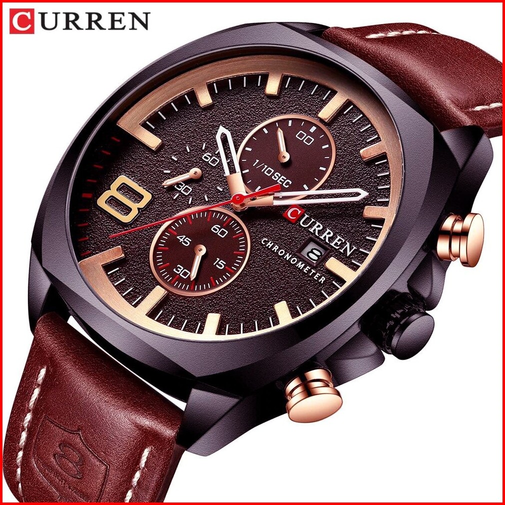 Curren 8324 Jam Tangan Pria Analog Tali Kulit Chronograph Aktif Currenos