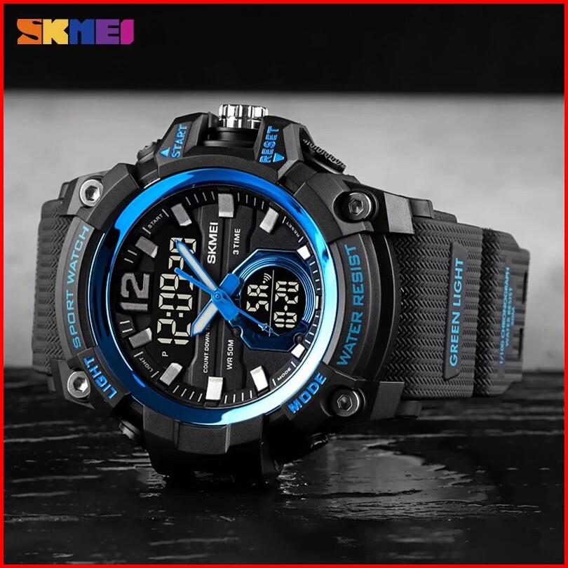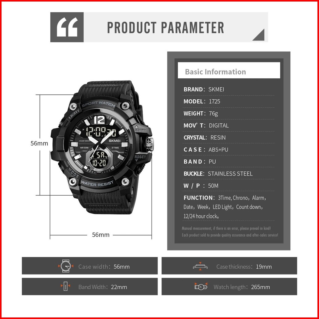Jam Tangan Pria Skmei 1725 Analog Digital Led Rubber Original Garansi
