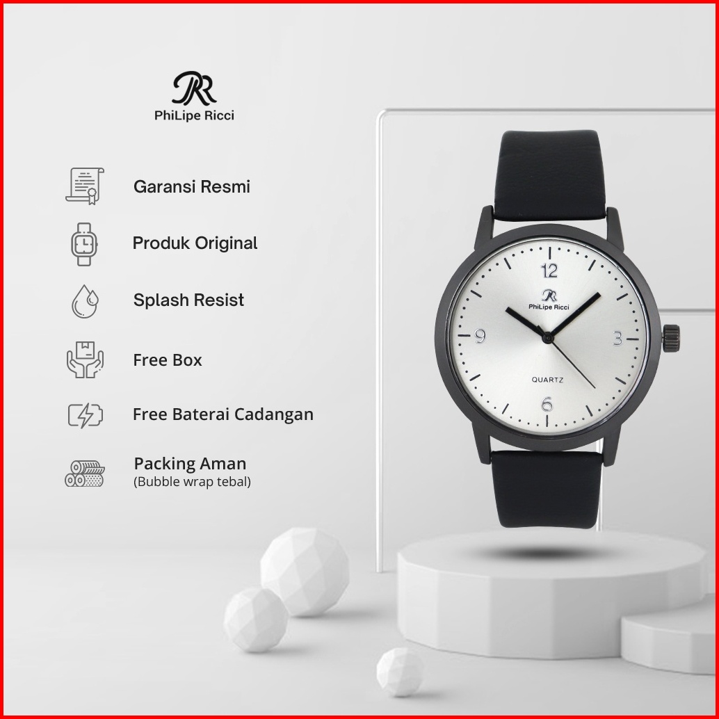 Philipe Ricci Jam Tangan Pria Kulit Analog Quartz Dial Bulat Desain Simpel Strap Tali Leather 4231 Free Box