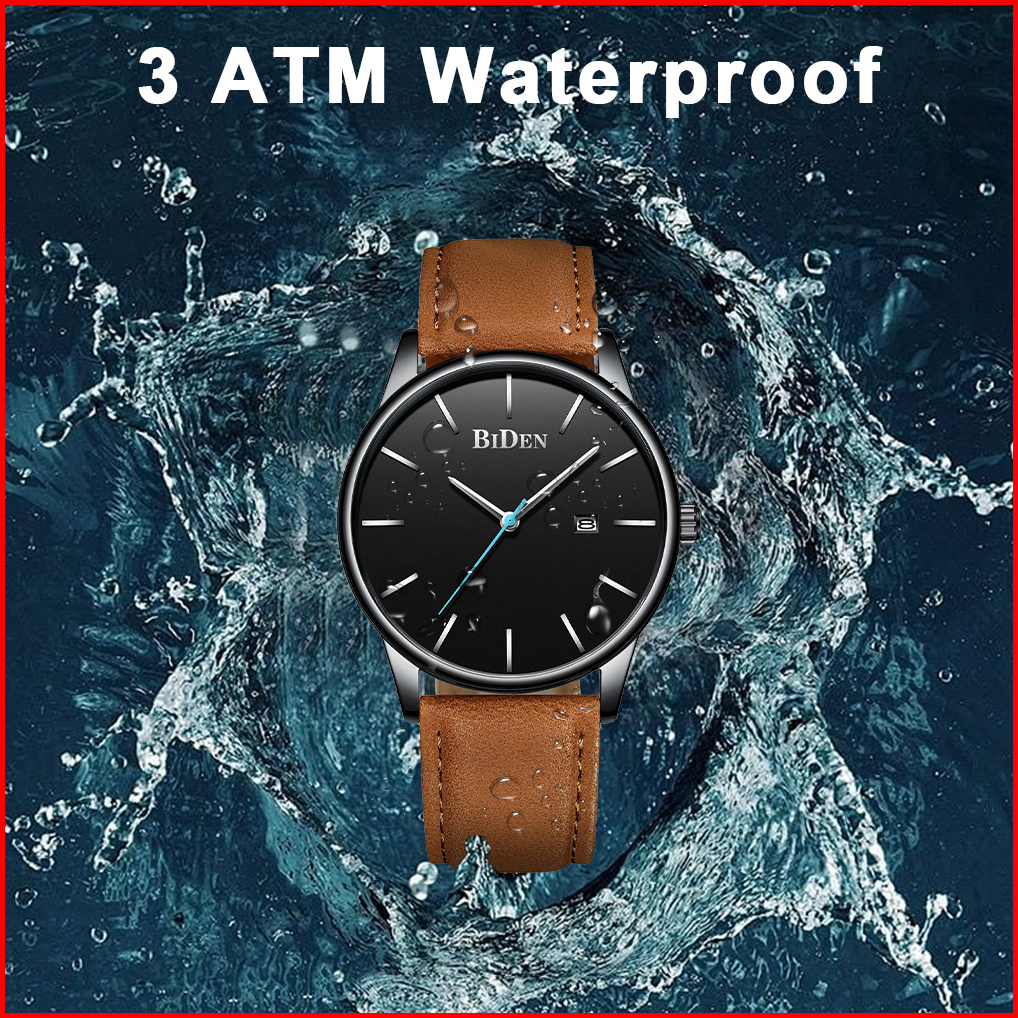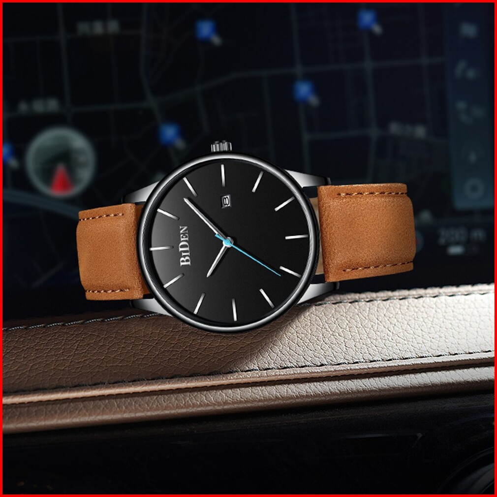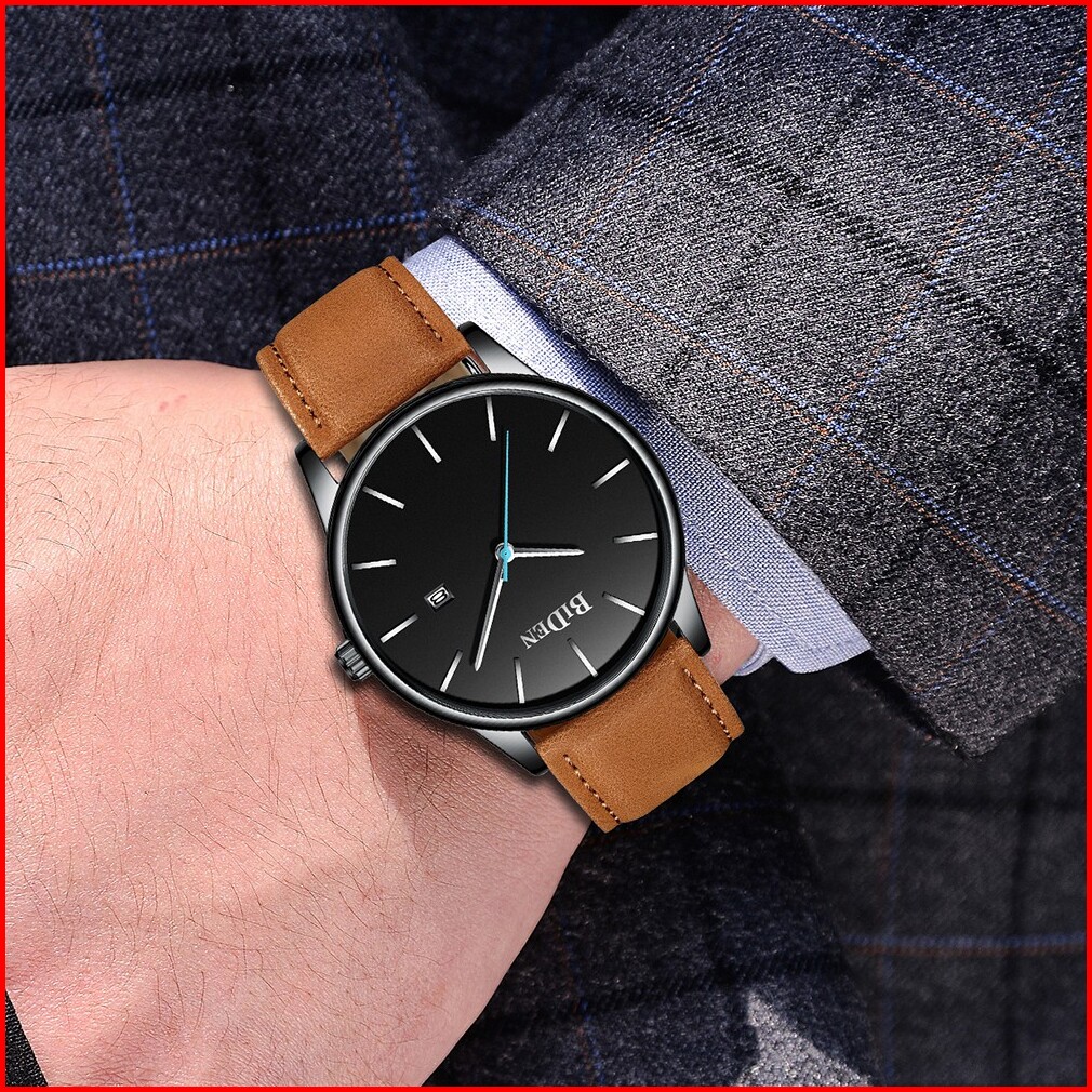 Biden Jam Tangan Pria Anti Air Santai Olahraga Kuarsa Jam Tali Kulit Otomatis Date Jam Tangan Cowok Original