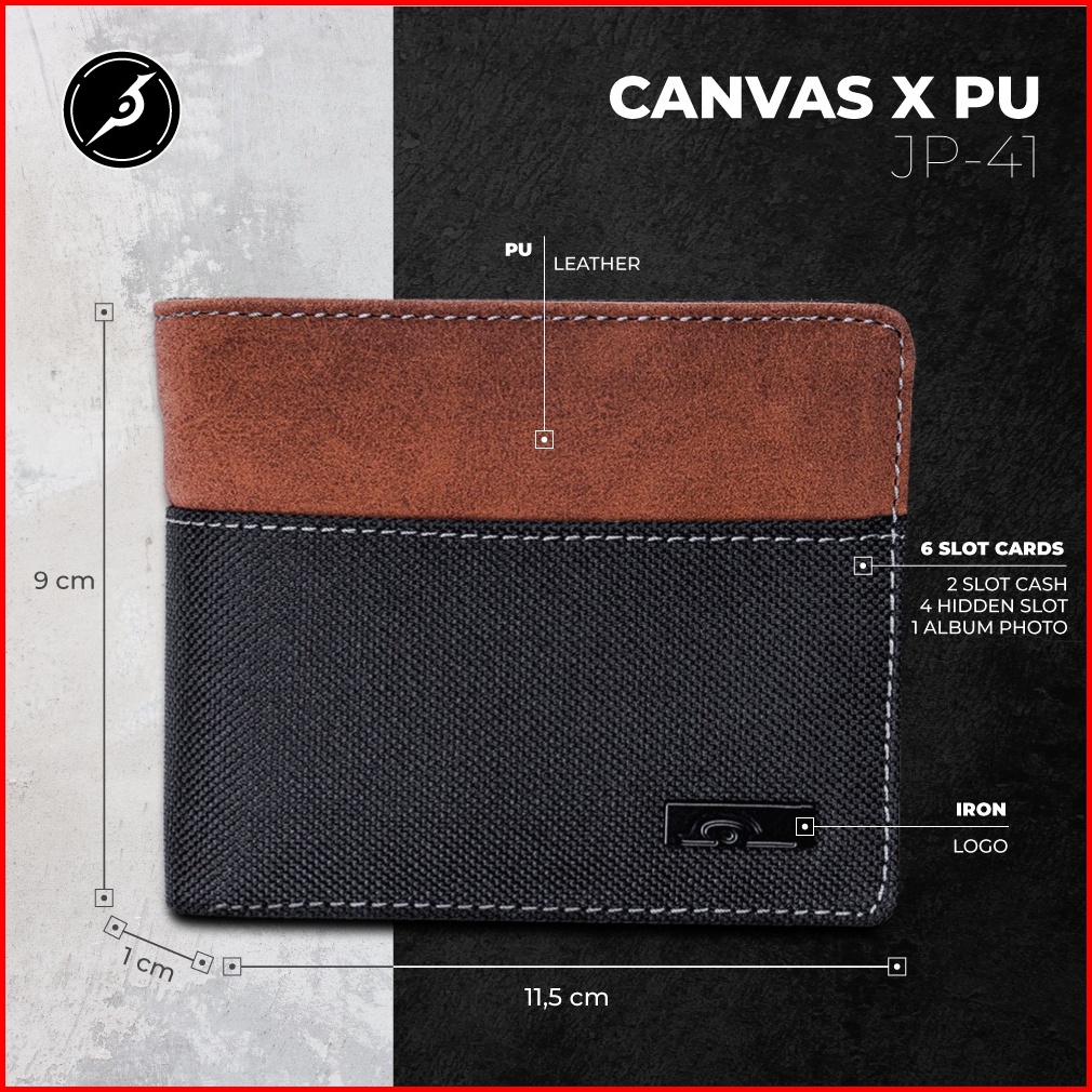 Jfr Gaywood Wallet - Dompet Pria Bahan Kanvas Kombinasi Kulit Pu Premium Jp41