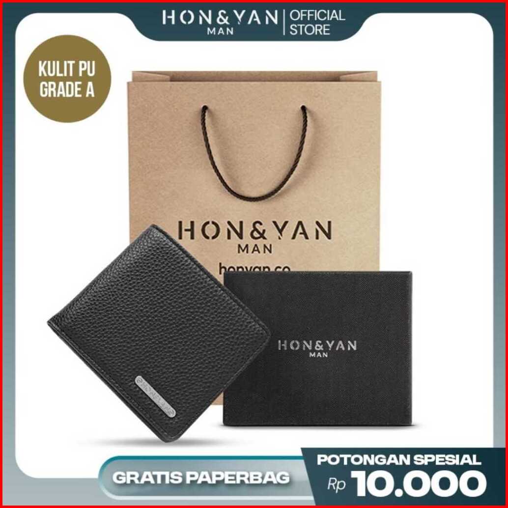 Honyan Man Dompet Lipat Pria Kulit Sintetis Terbaru Original Import Hitam - Rei Short Wallet