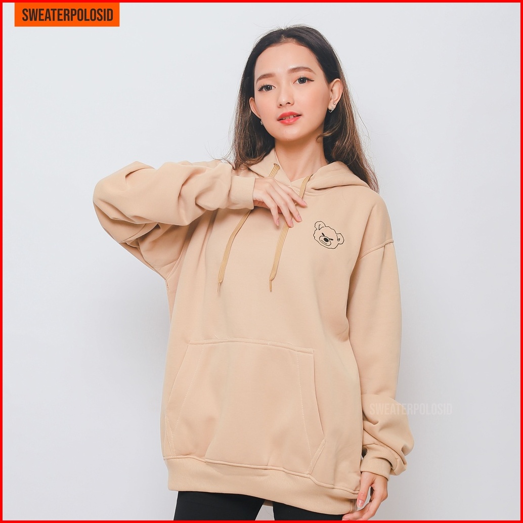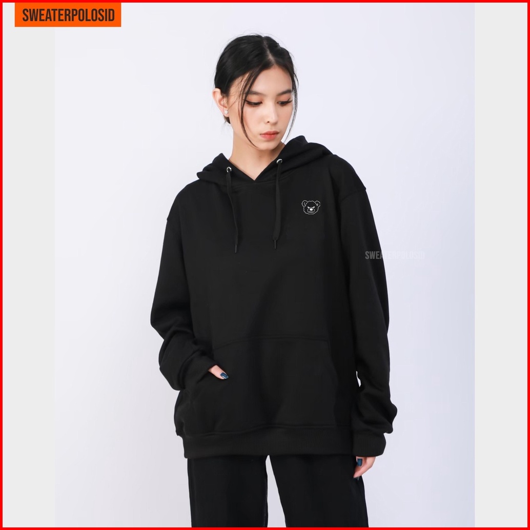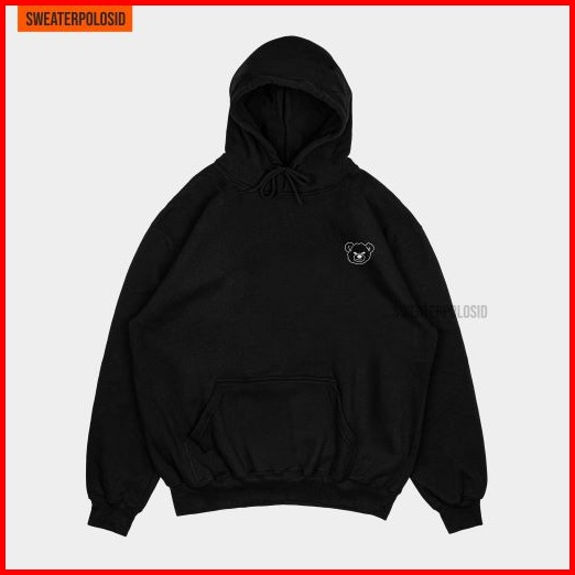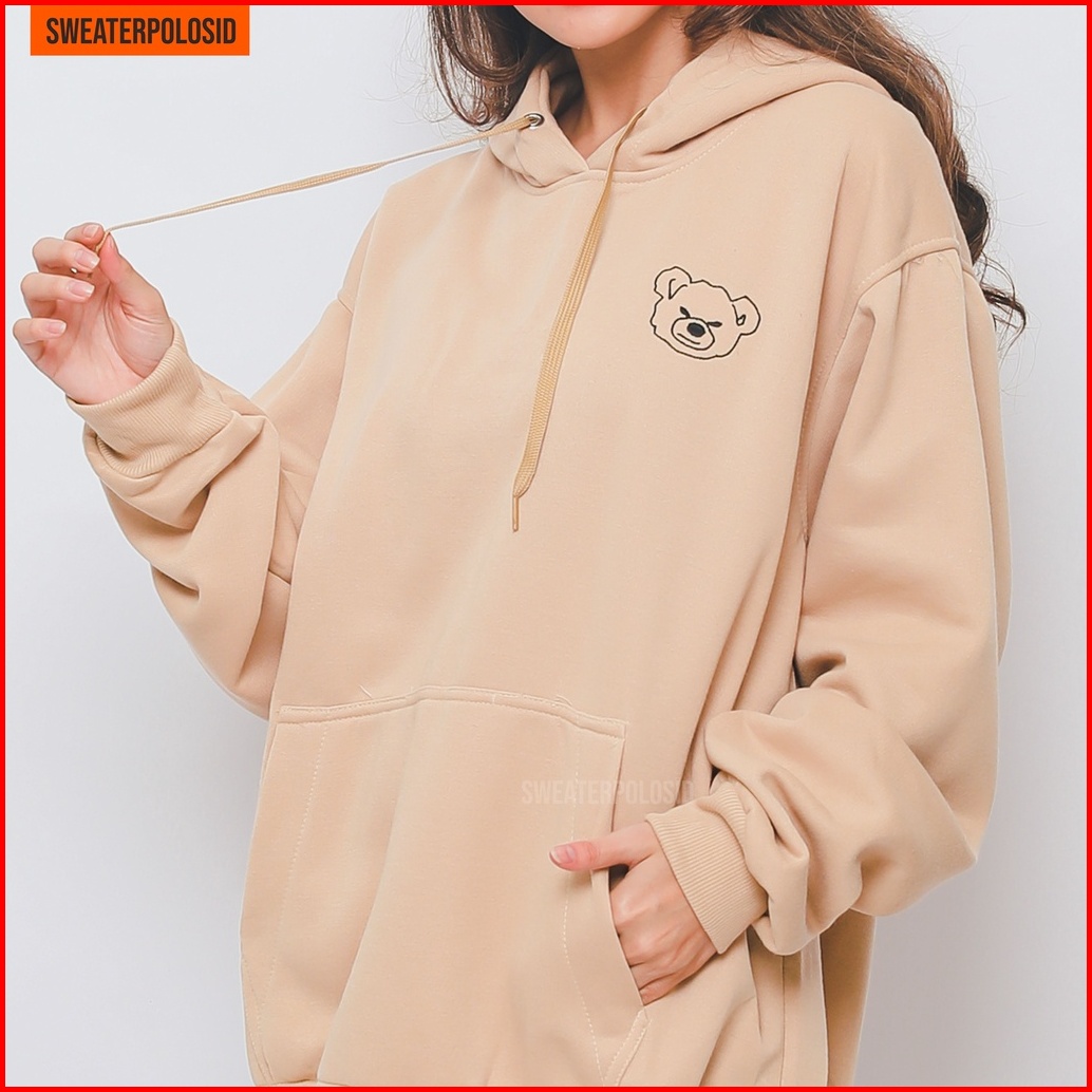 Swepo Hoodie Jumper Angry Bear Bordir Dada Kiri S - Xxl Pria Wanita