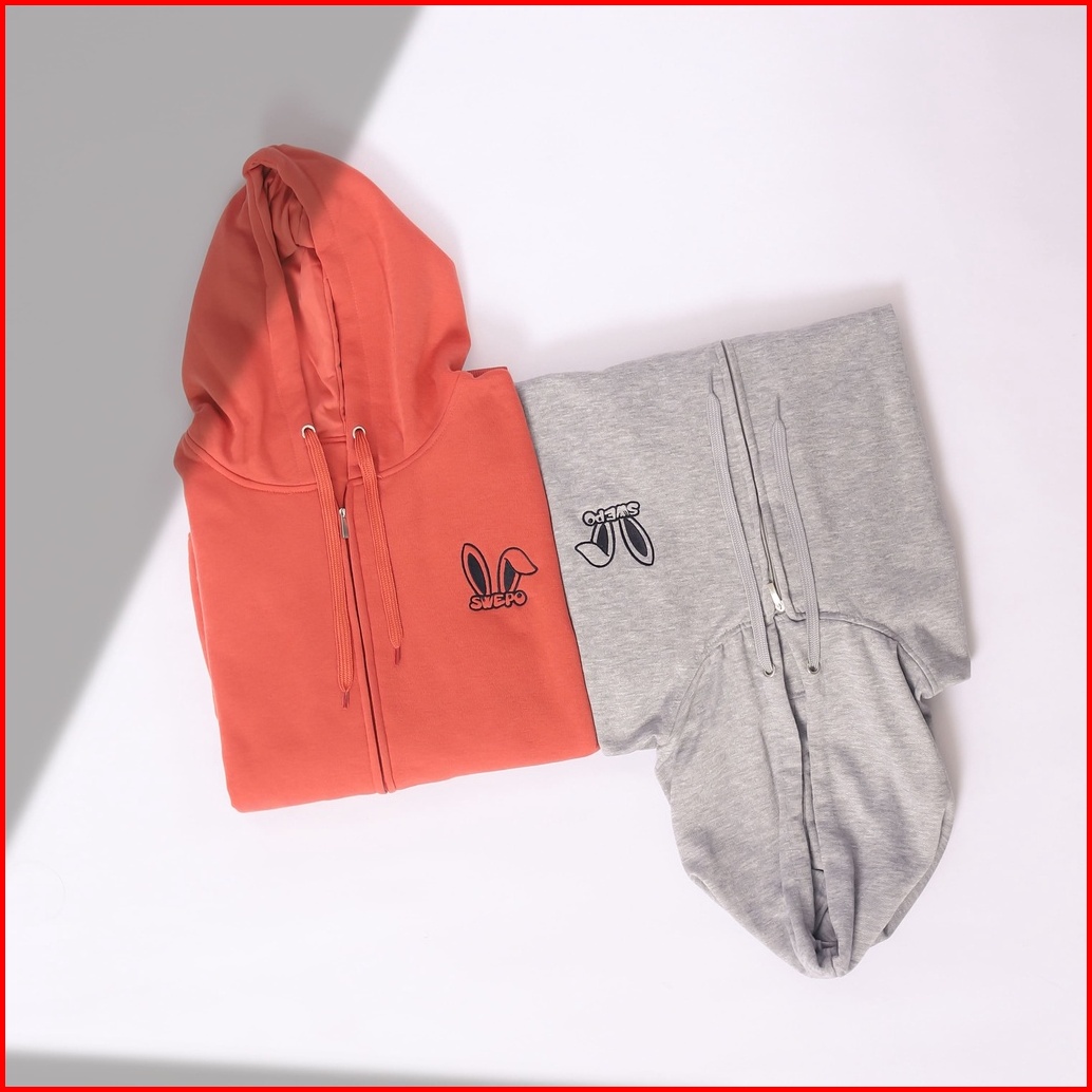 Swepo Hoodie Zipper Bordir Simply Bunny Size M - Xxxl Pria Wanita