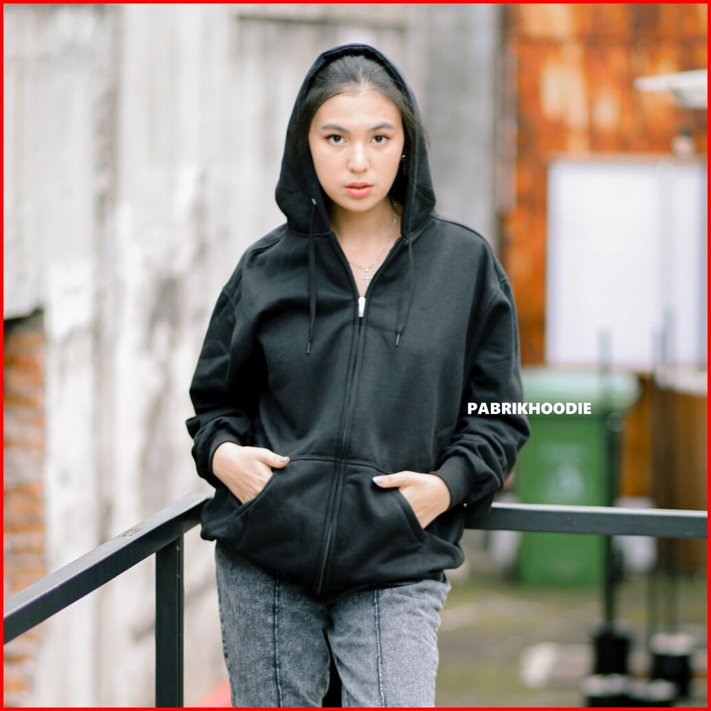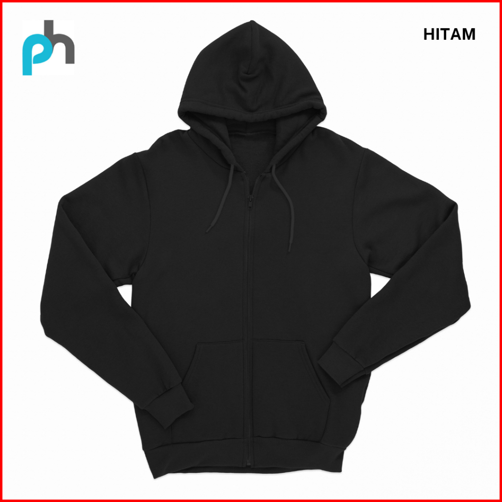 Pabrikhoodie - Jaket Hoodie Zipper Hitam Polos Pria Wanita M - Xxxl