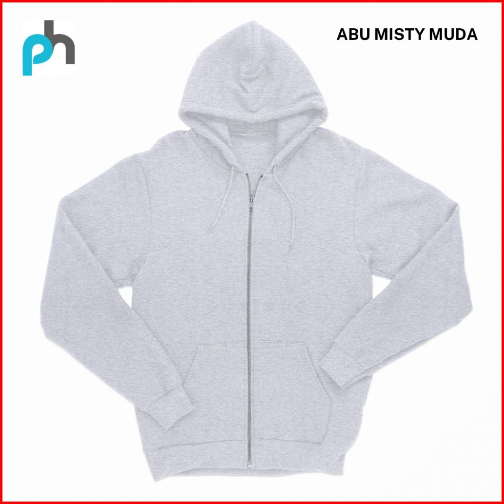 Pabrikhoodie - Jaket Hoodie Zipper Abu Misty Muda Polos Pria Wanita M - Xxxl
