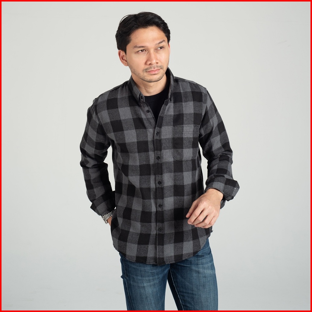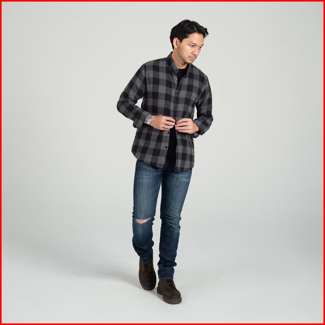 Kemeja Flanel Pria Woodcutter Grey Tomica Flannel Shirt Lengan Panjang