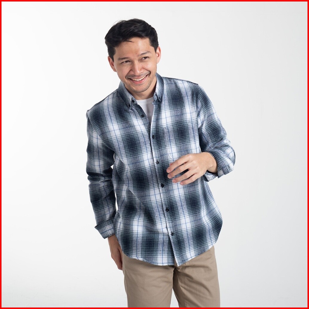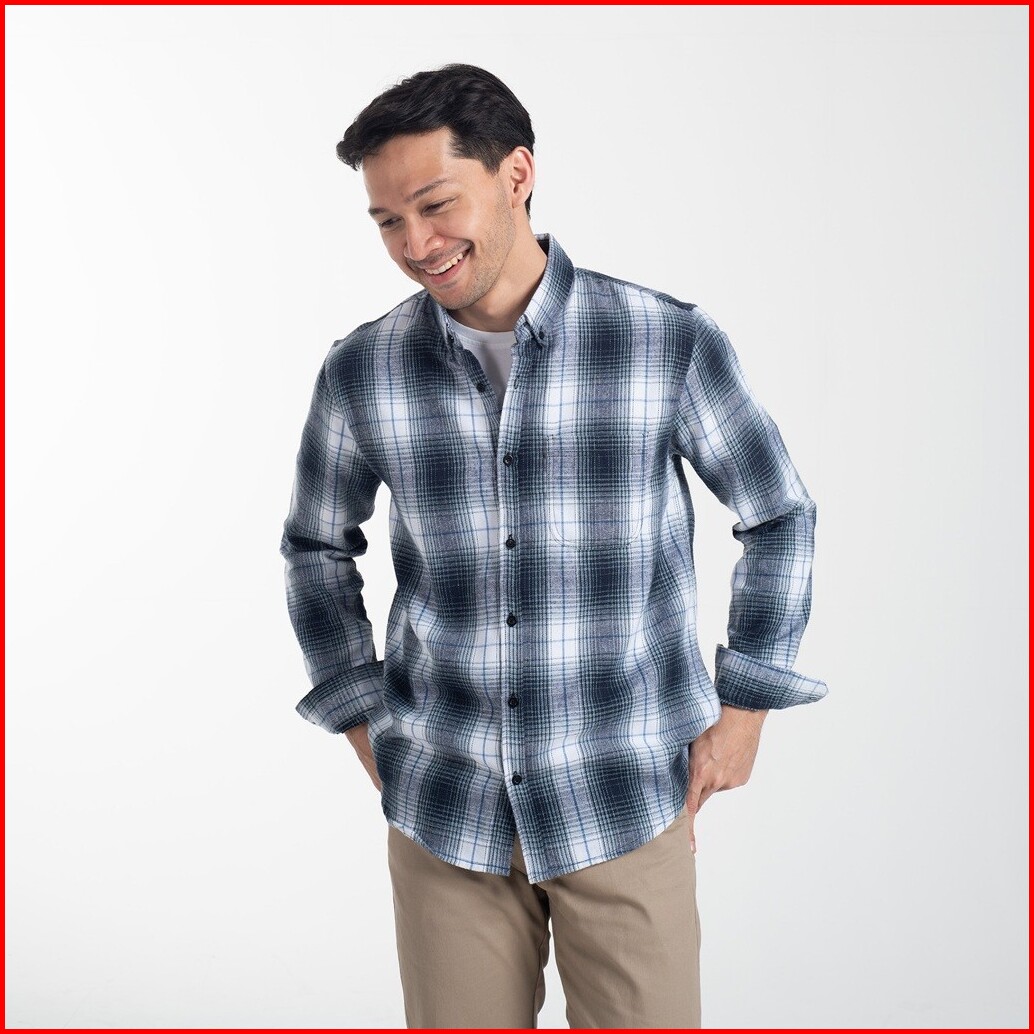 Kemeja Flanel Pria Woodcutter Blue Connelly Flannel Shirt Lengan Panjang