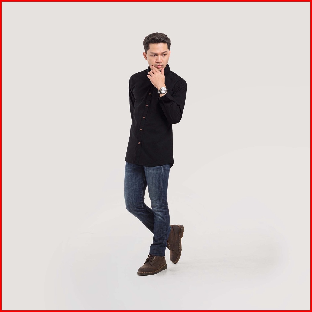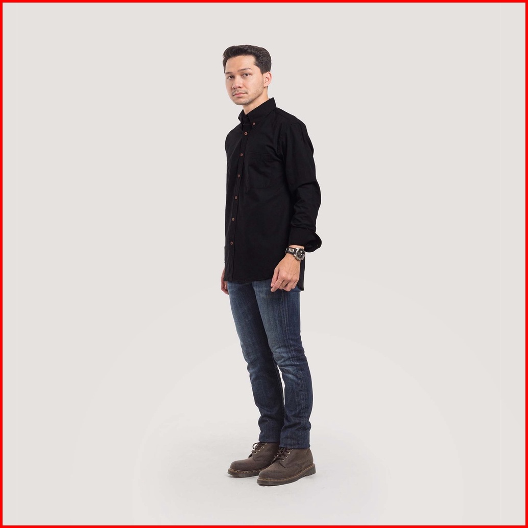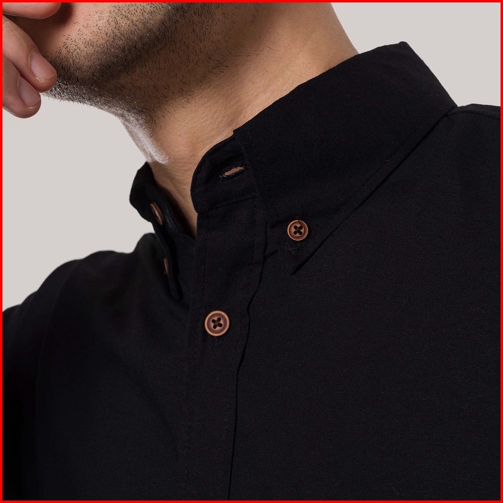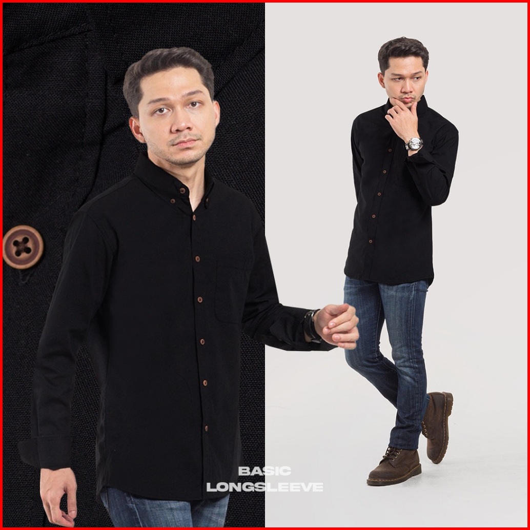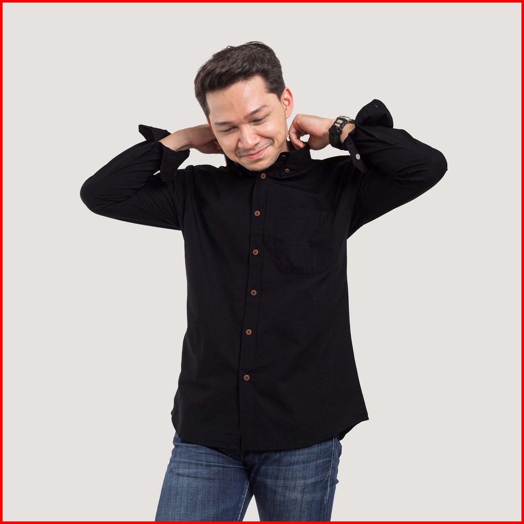 Kemeja Polos Pria Oxford Woodcutter Basic Shirt - Black Hitam Longsleeve Lengan Panjang