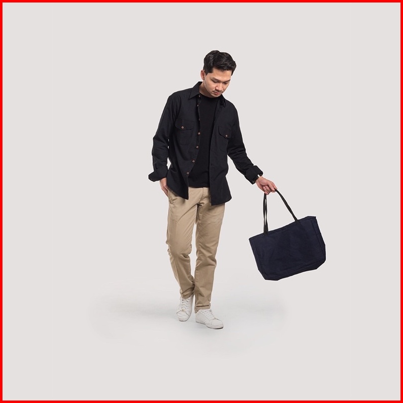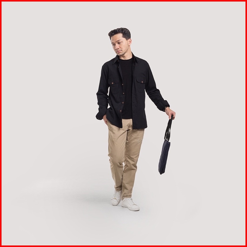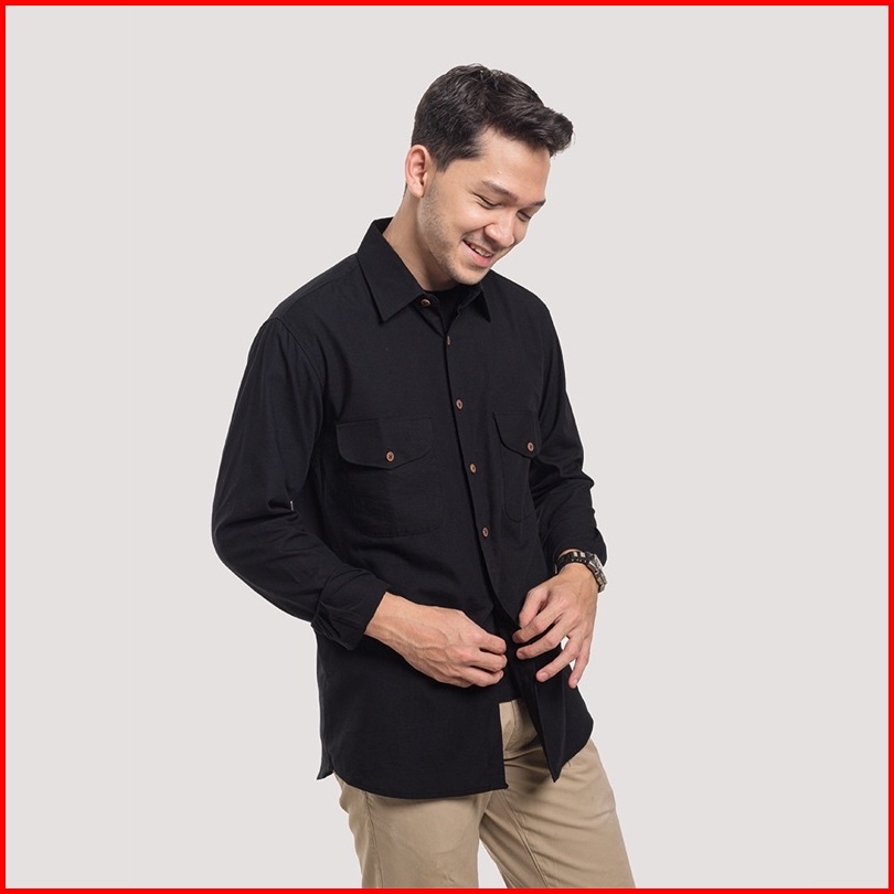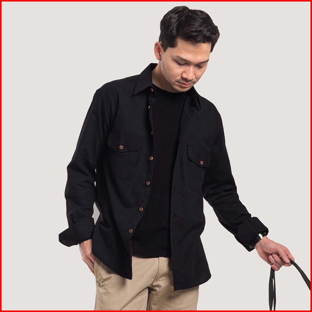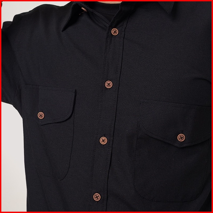 Kemeja Polos Pria Woodcutter Basic Work Shirt Black Hitam - Double Pocket Kantong 2