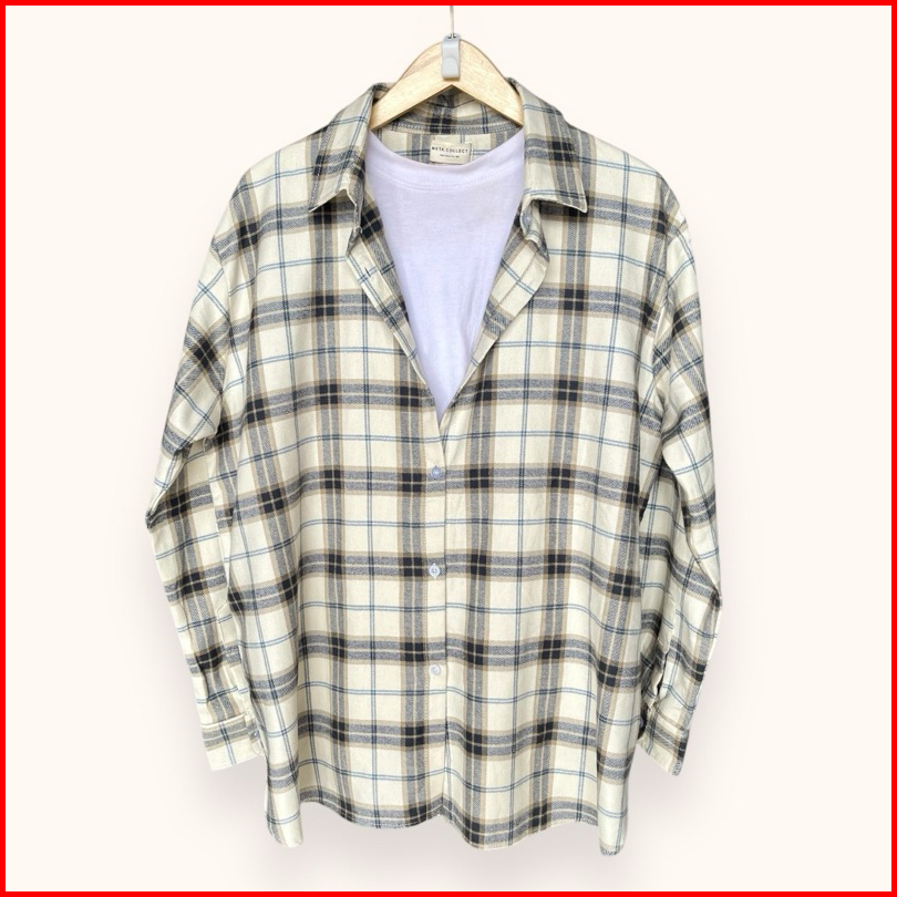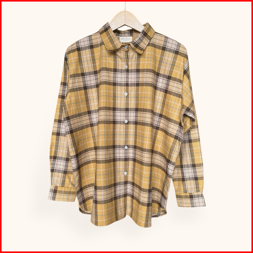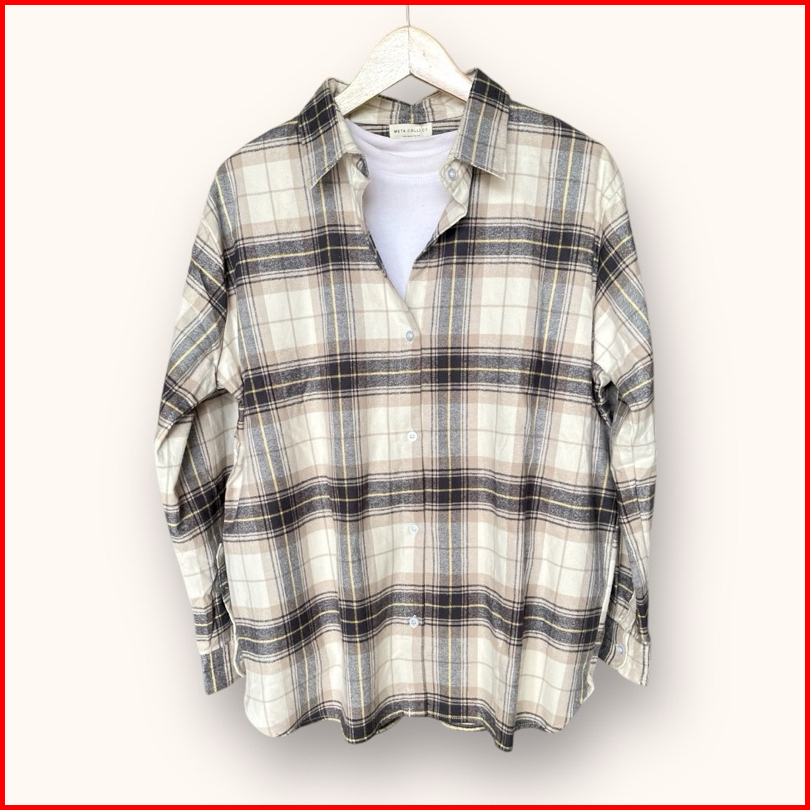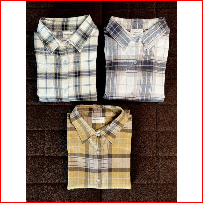 Flannel Shirt Meta.collect Atasan Kemeja Flanel Kotak Kotak Lengan Panjang