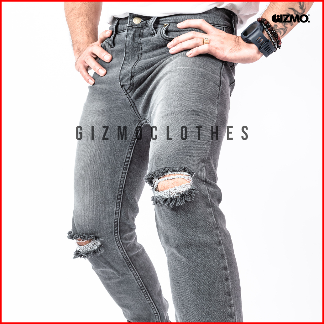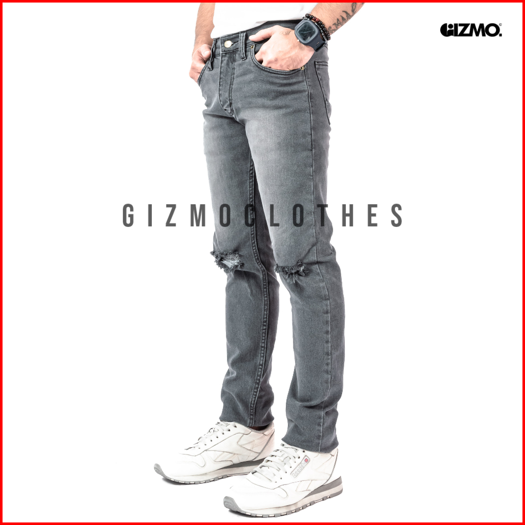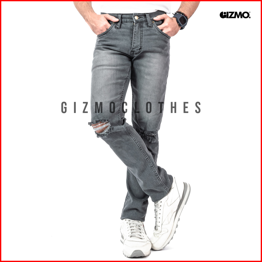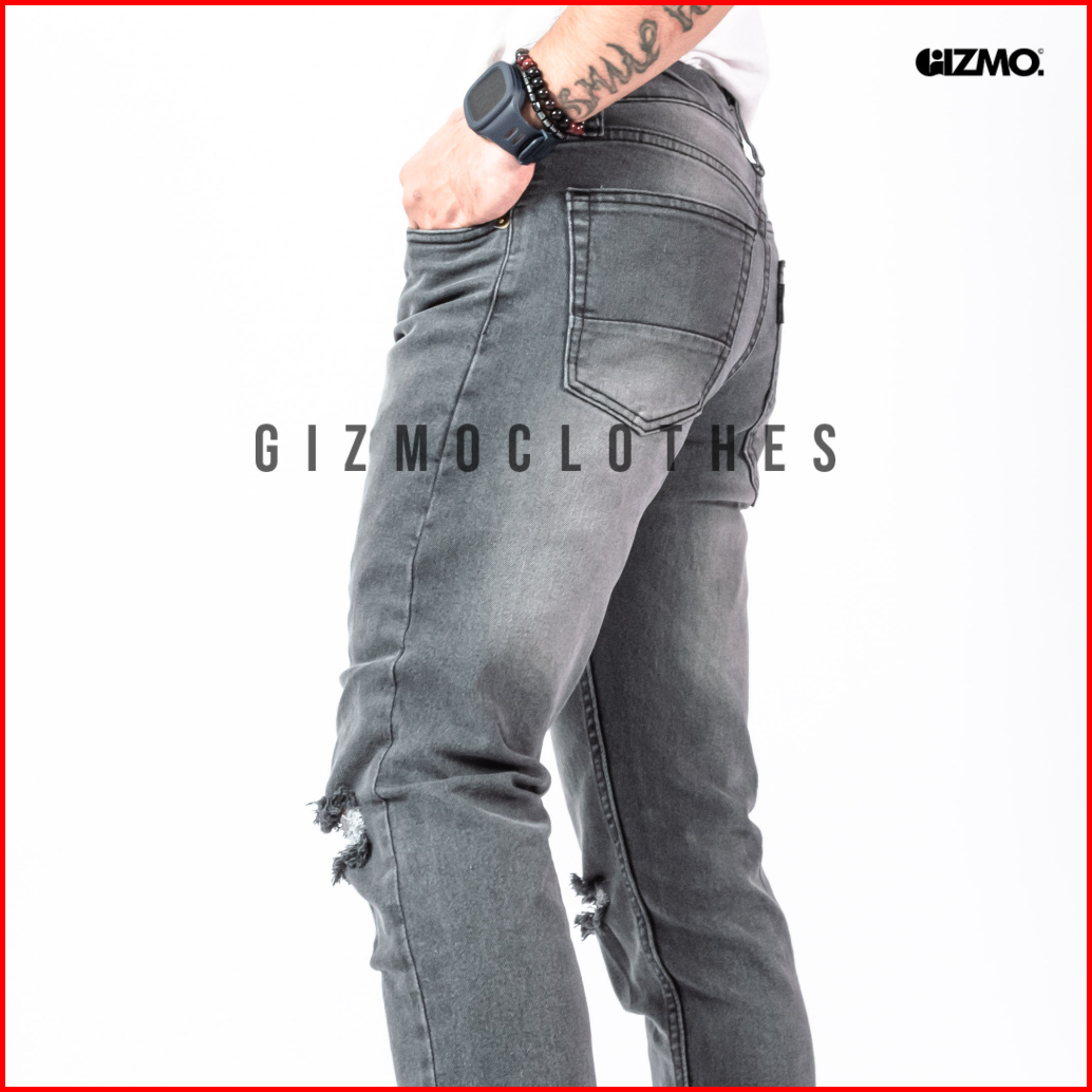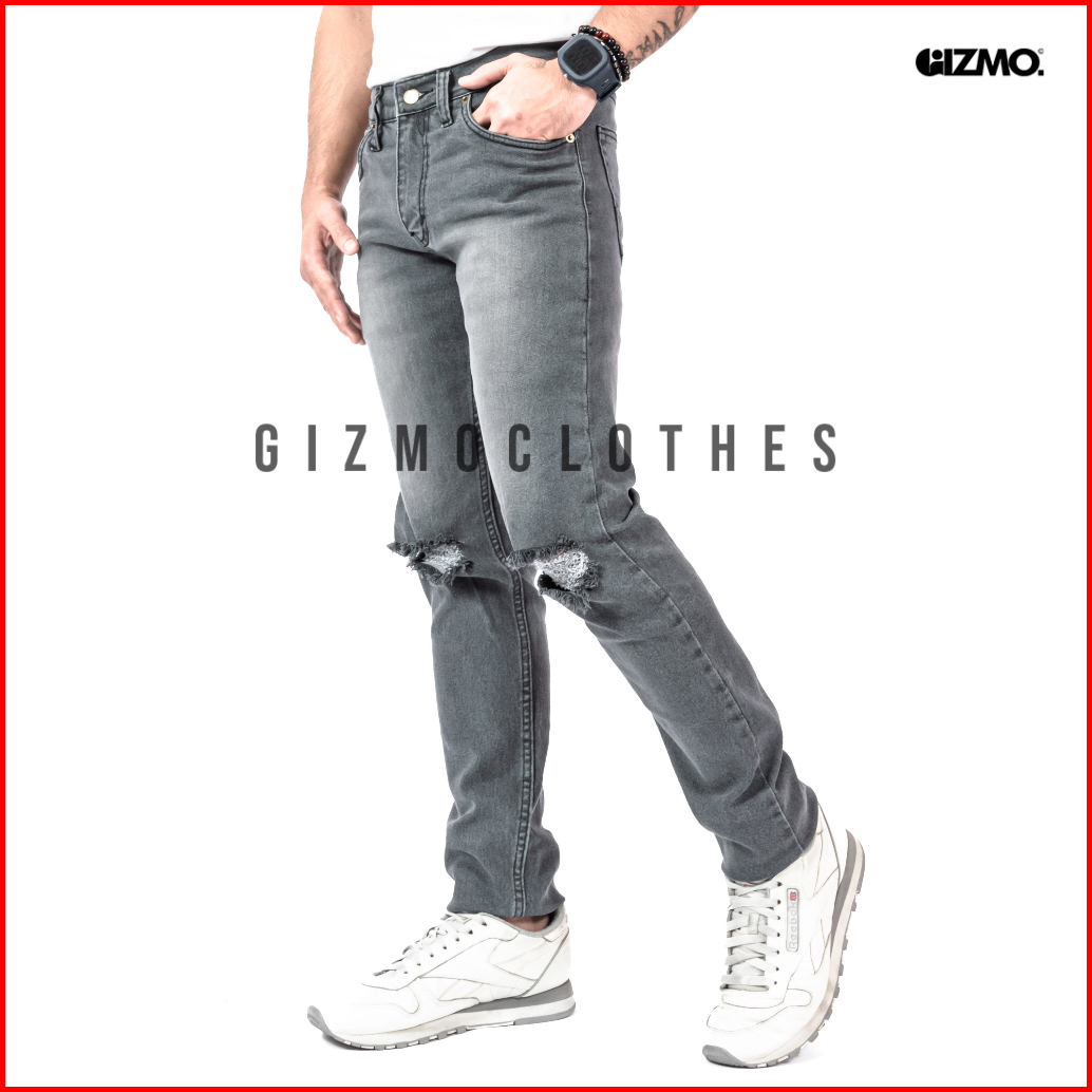 Gizmo - Celana Sobek Pria Grey Stone Ripped Jeans Robek Lutut Soft Denim Strech Skinny Fit Grey Stone Ripped