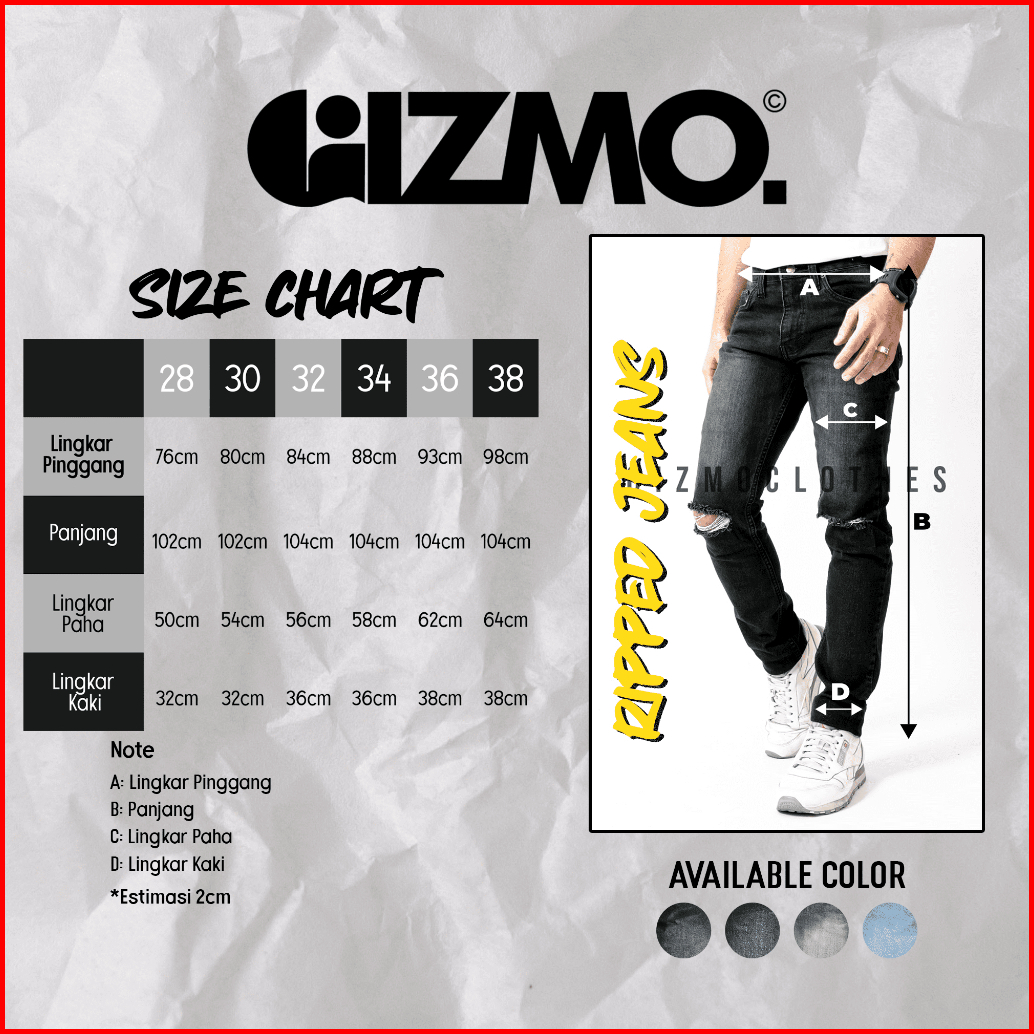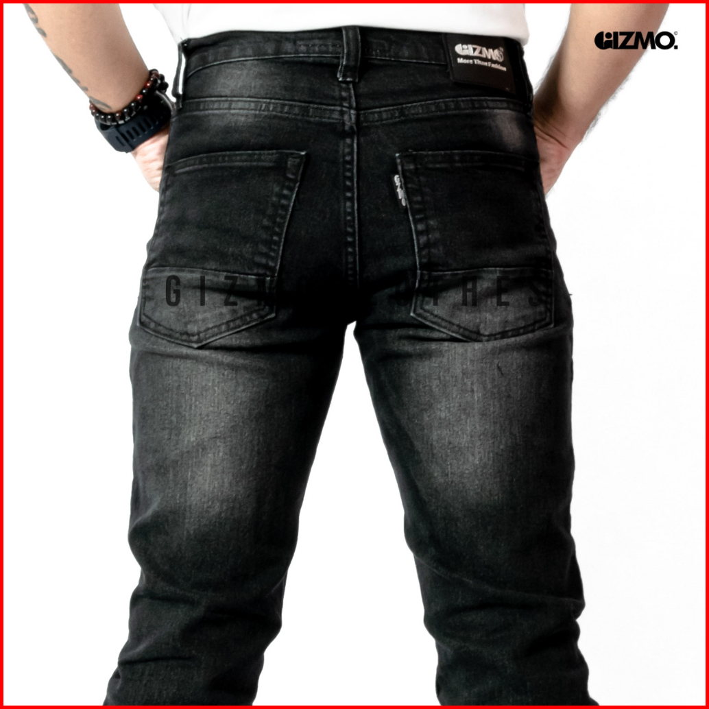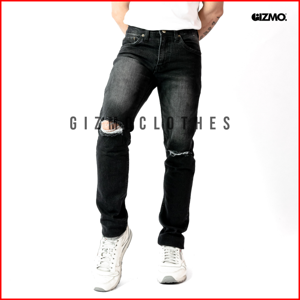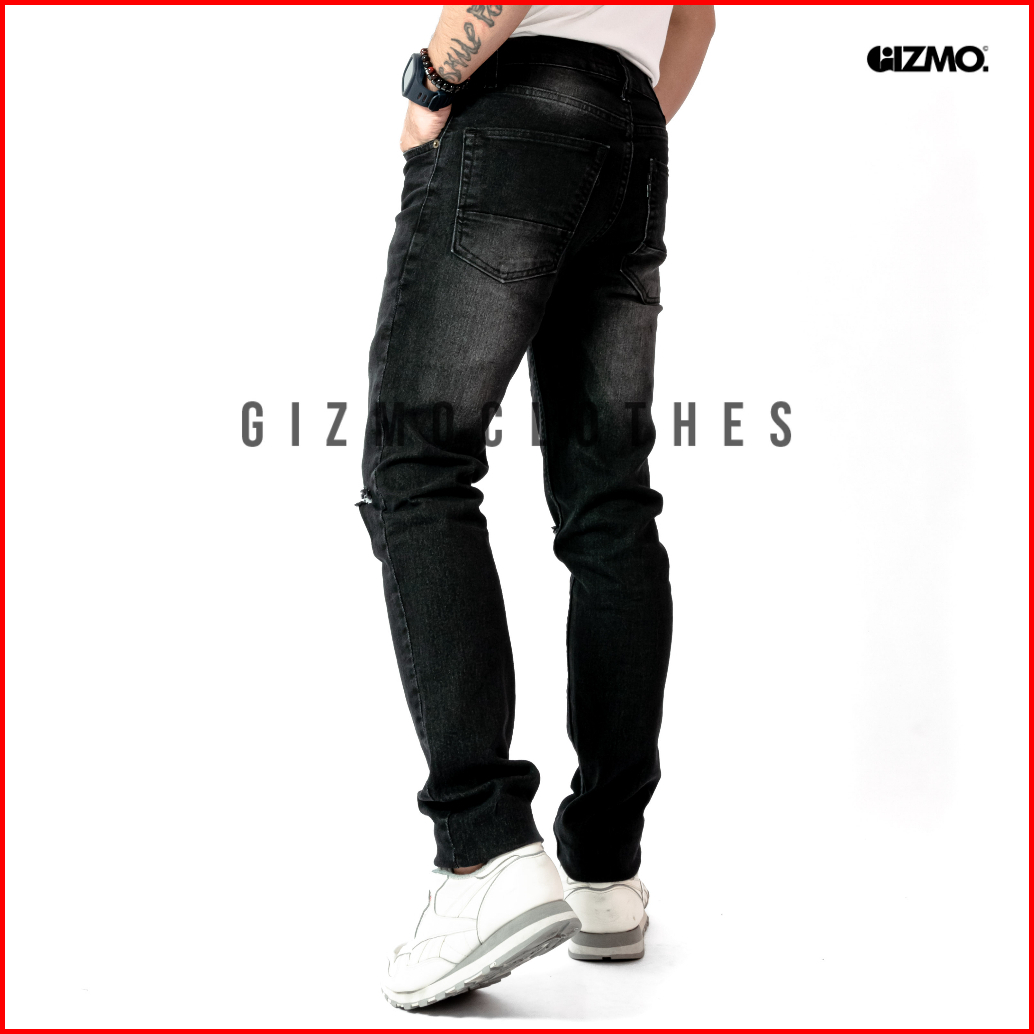 Gizmo - Celana Sobek Pria Black Jazz Ripped Jeans Robek Lutut Soft Denim Strech Skinny Fit Hitam Ripped