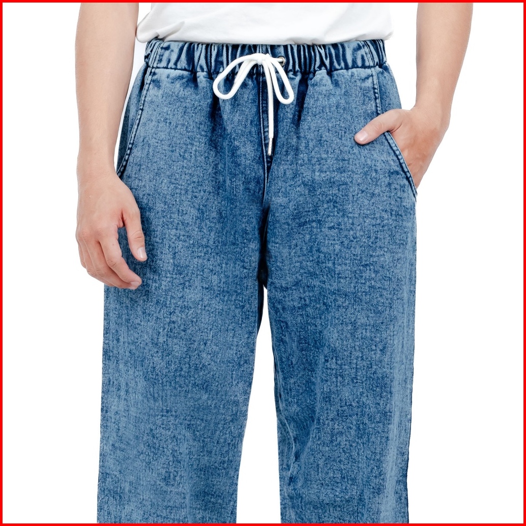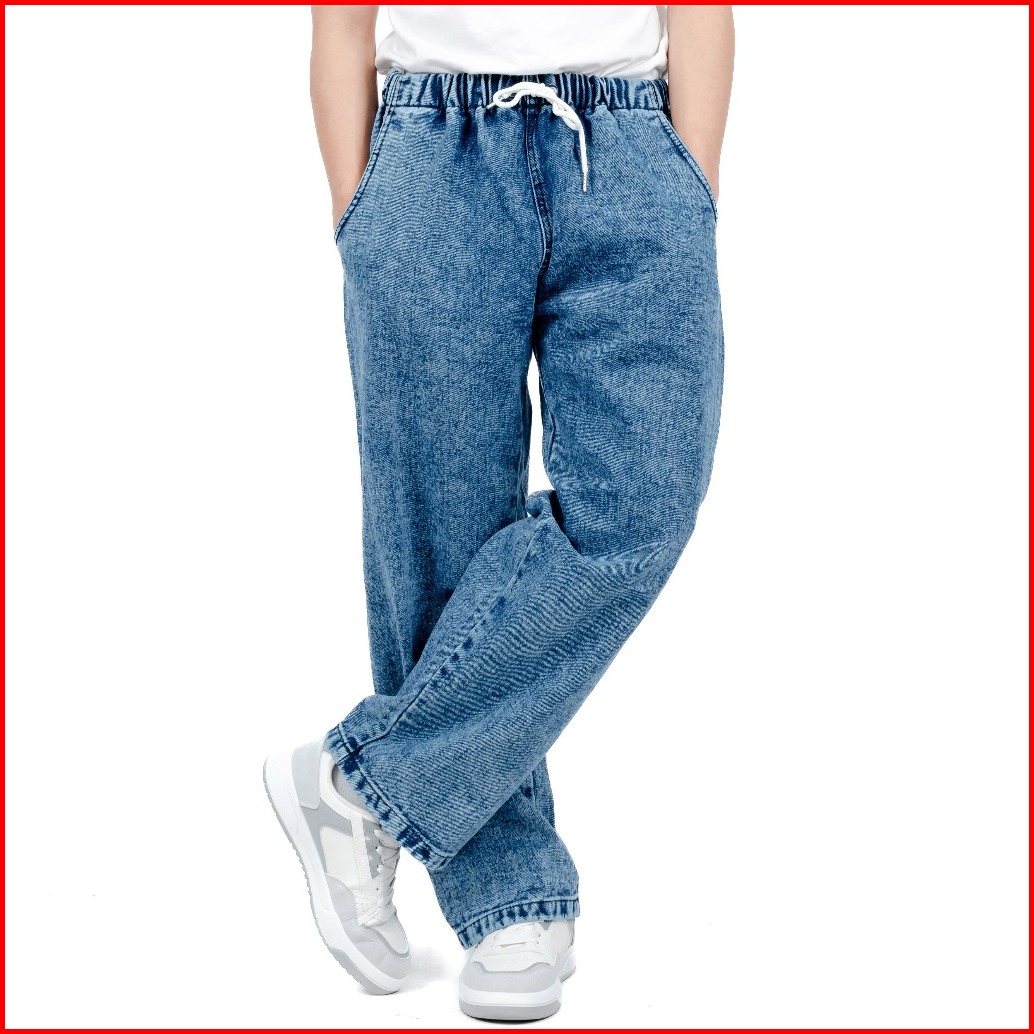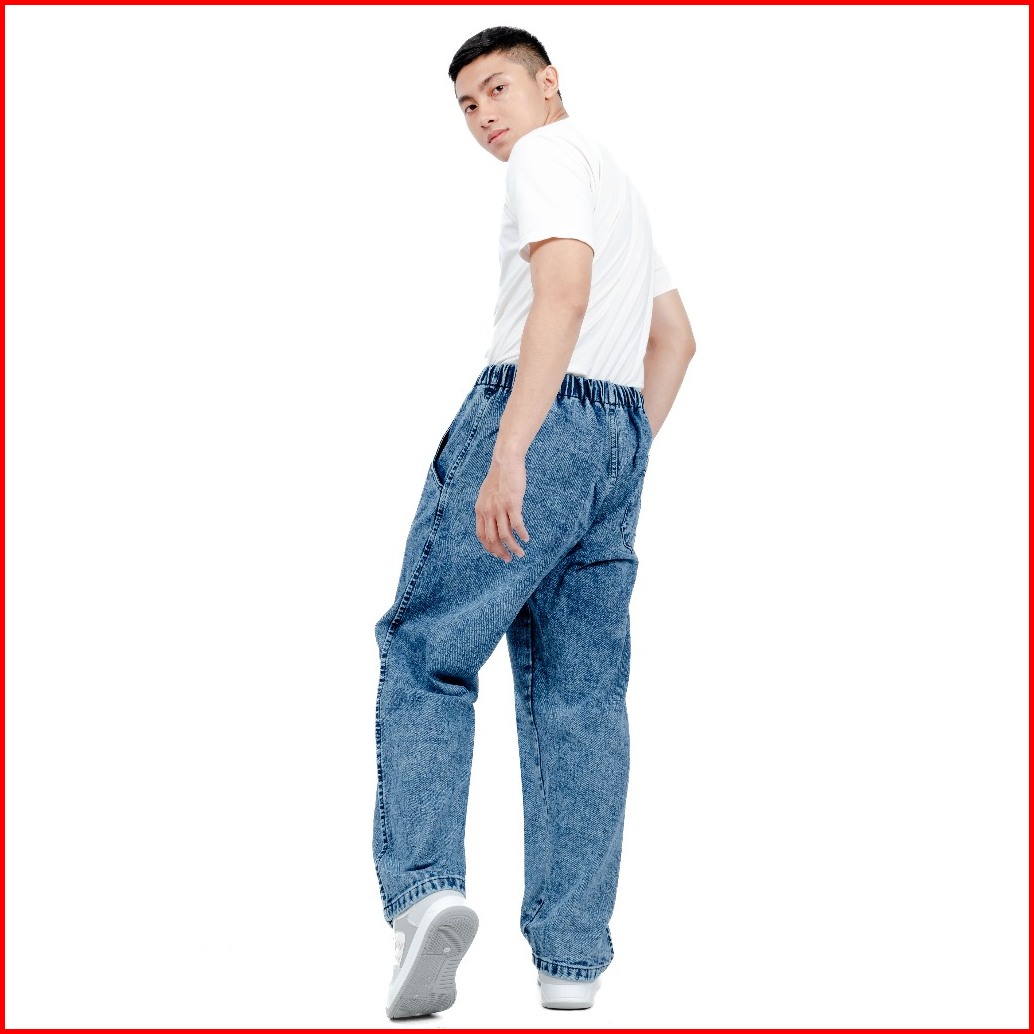 Gizmo - Baggy Pants Relaxed Jeans Celana Baggy Blue Sandwash Gombrong Karet Pinggang Oversize Denim