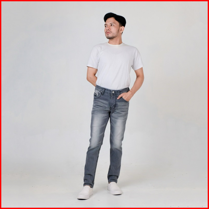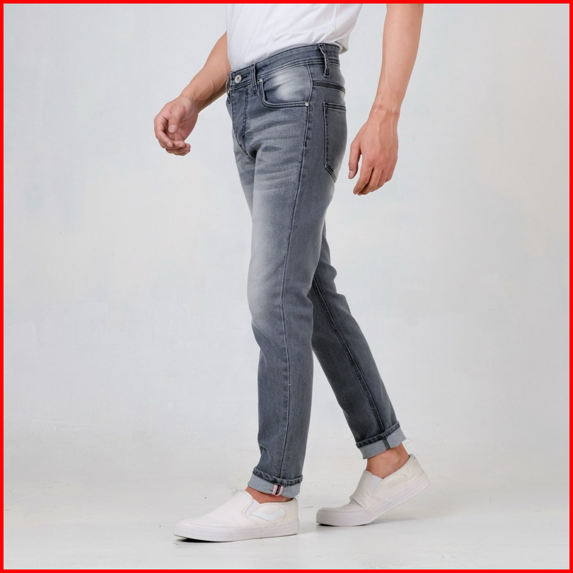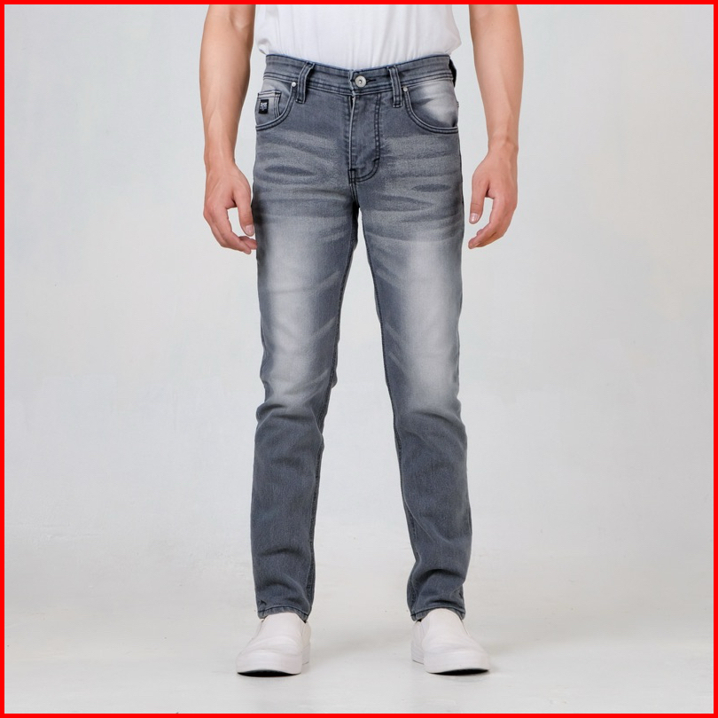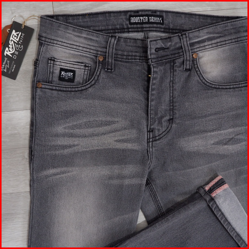 Roosterdenim Celana Jeans Pria Abu Scrub Denim Selvedge Panjang Skinny