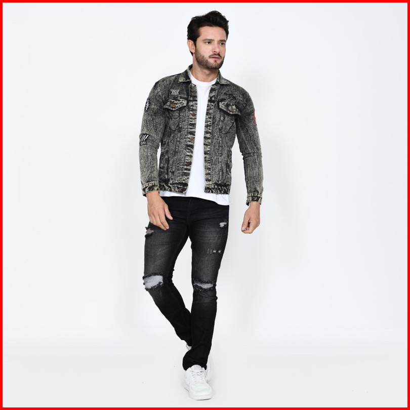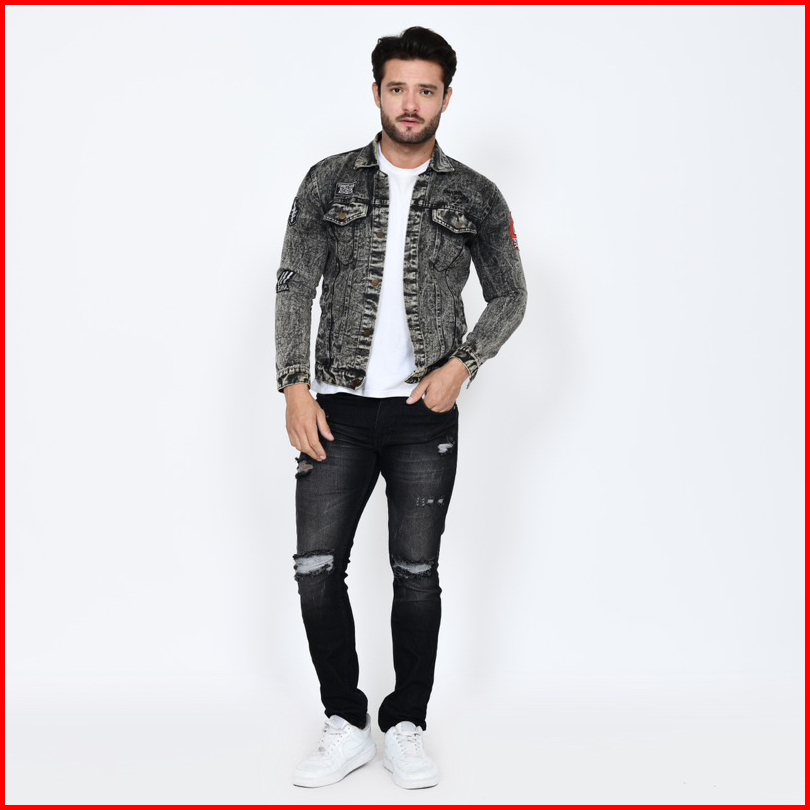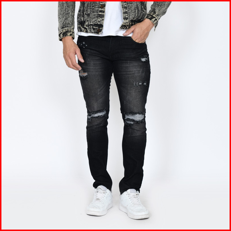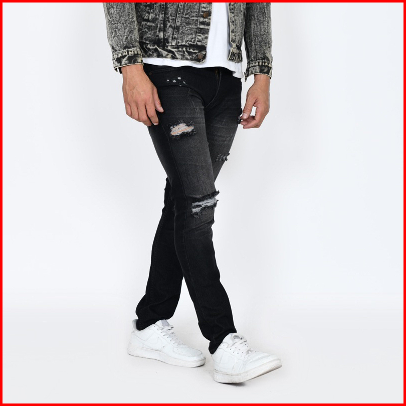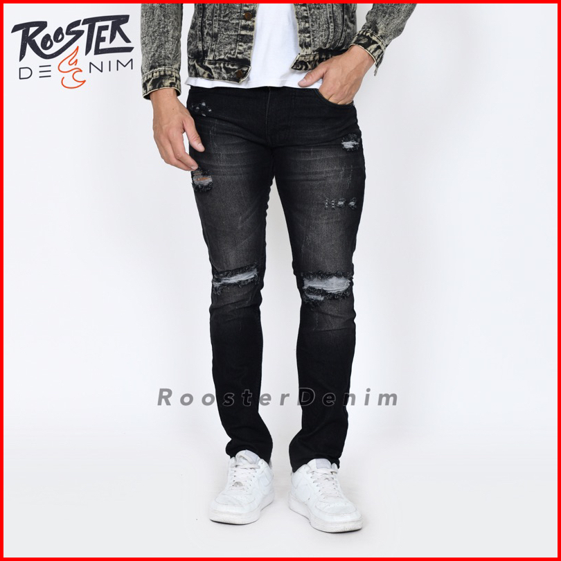 Roosterdenim Celana Jeans Skinny Biker Knee Rips Black Denim Streact