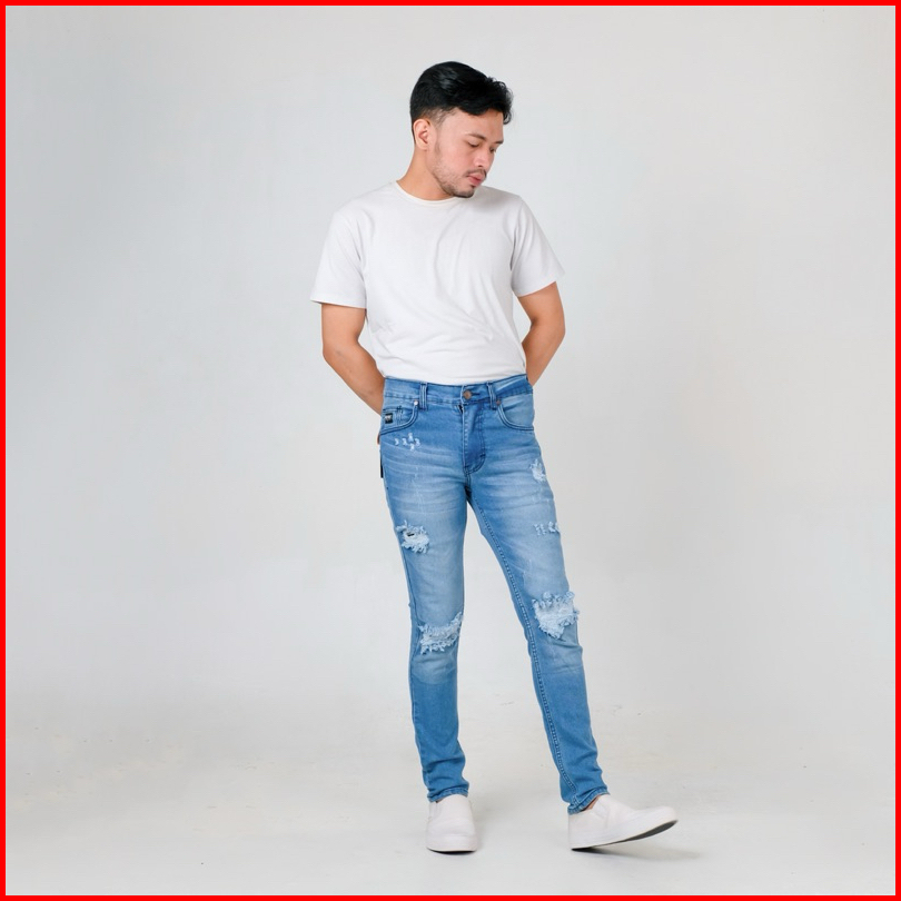 Roosterdenim - Celana Jeans Sobek Skinny Bikers Ripped Knee Bioblit