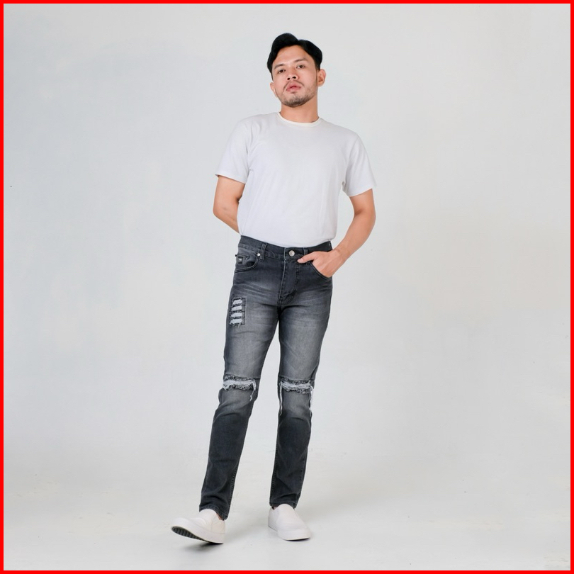 Roosterdenim - Sbk Petir Celana Jeans Pria Sobek Long Ripped Pants Gray