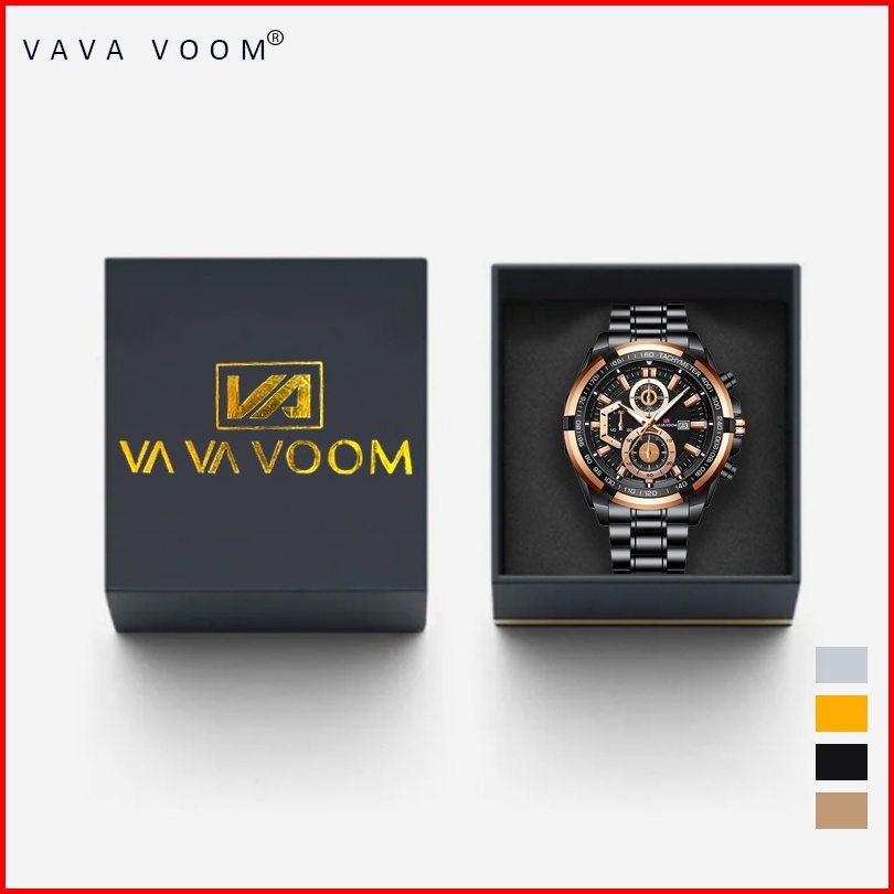 Va Va Voom 2321 Jam Tangan Pria Olahraga Stainless Steel Analog Quartz Original Tahan Air Watch Kotak Gratis