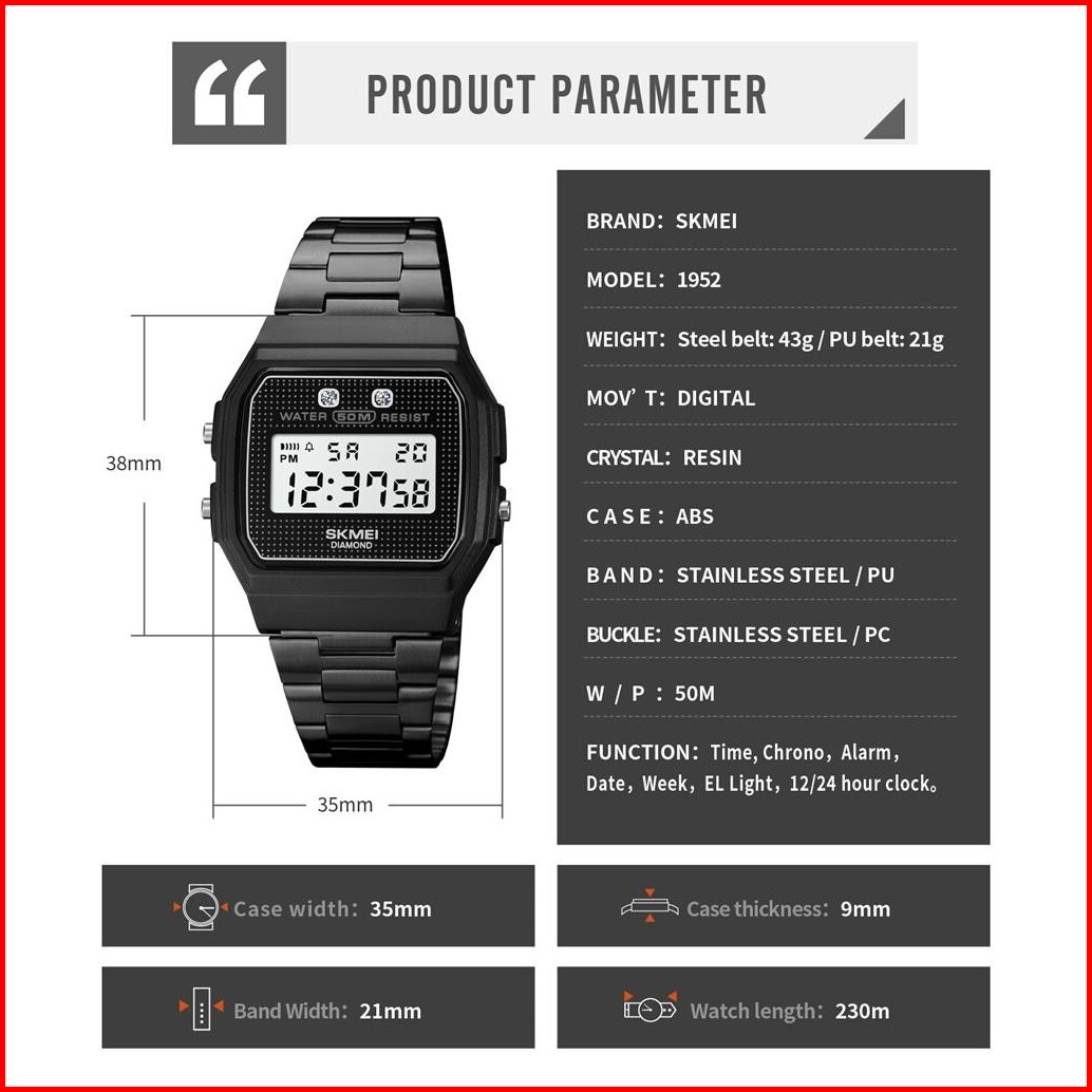 Jam Tangan Pria Wanita Skmei 1952 Digital Stainless Steel Original Skmei