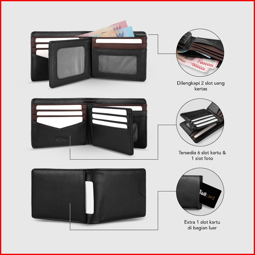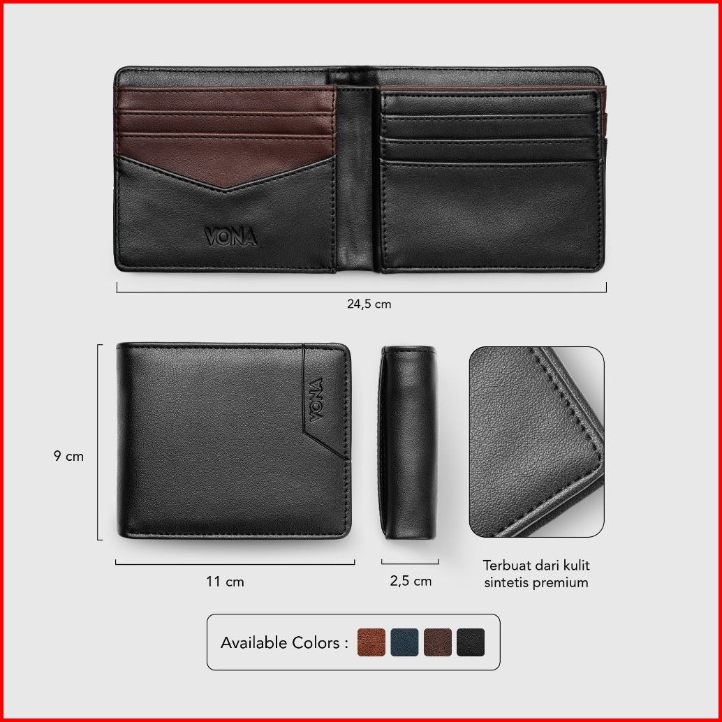 Vona Nassau Wallet - Dompet Pria Pendek Lipat 3 Ruang Banyak Slot Kartu Dengan Aksen Variasi Warna