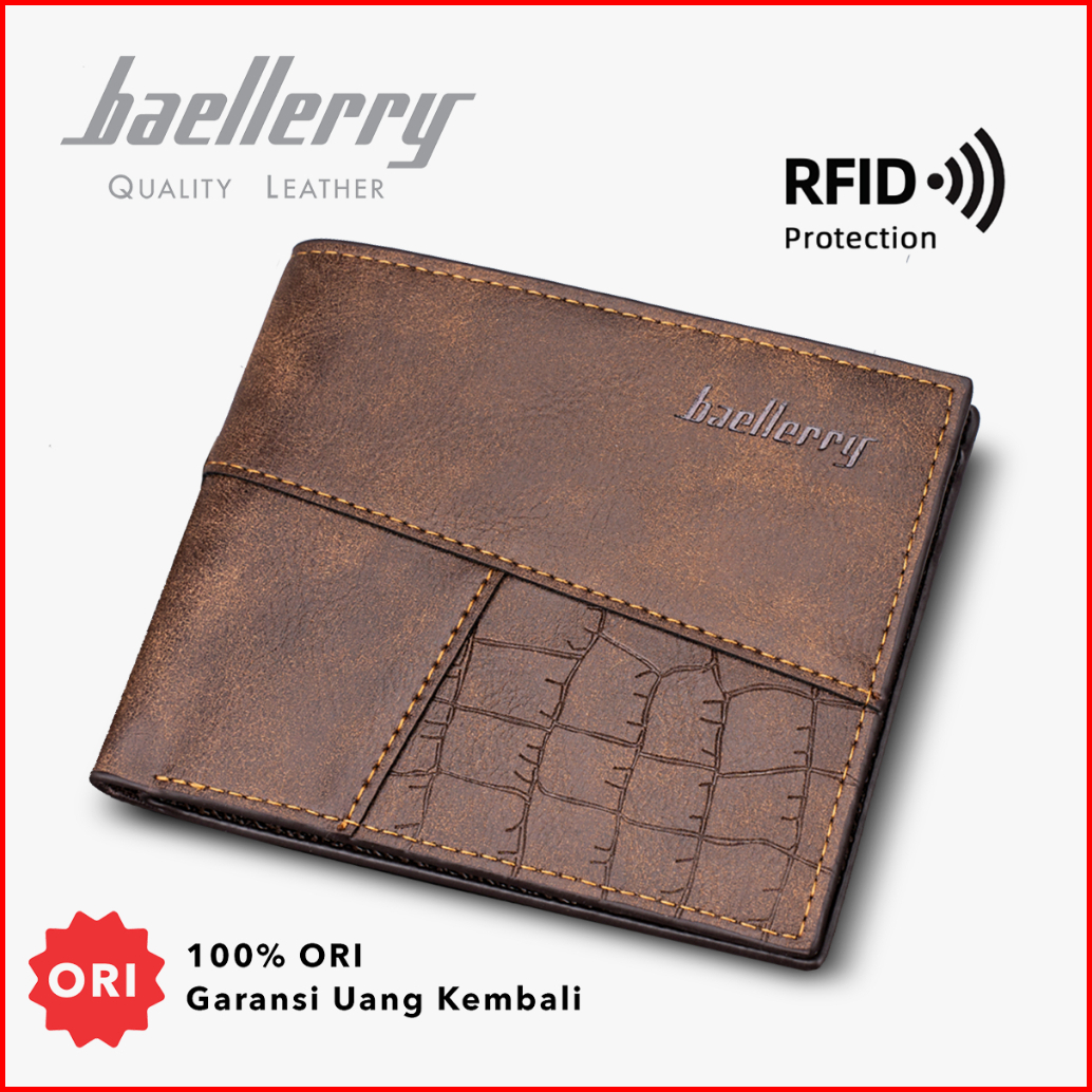 Baellerry D3031 Dompet Pria Rfid Protect Bahan Kulit Pu Leather Premium Baeos