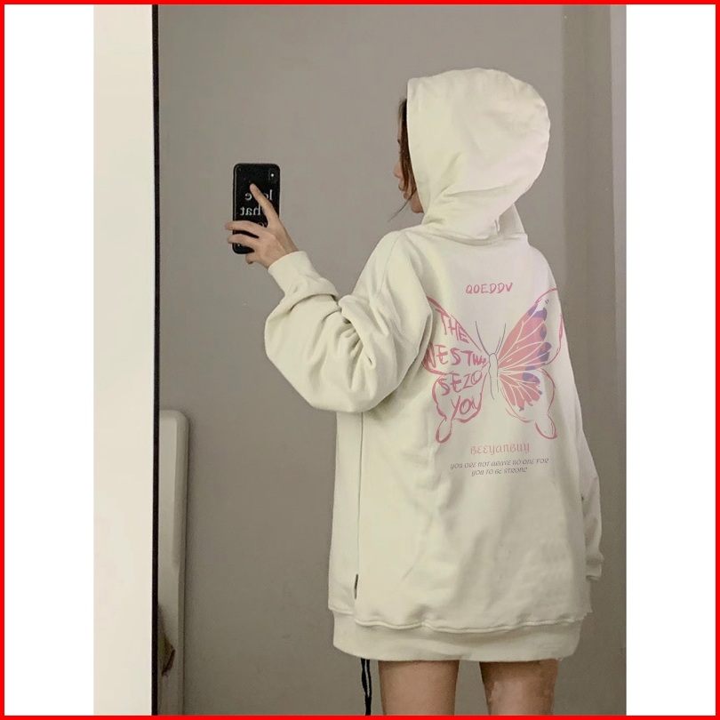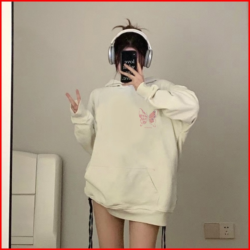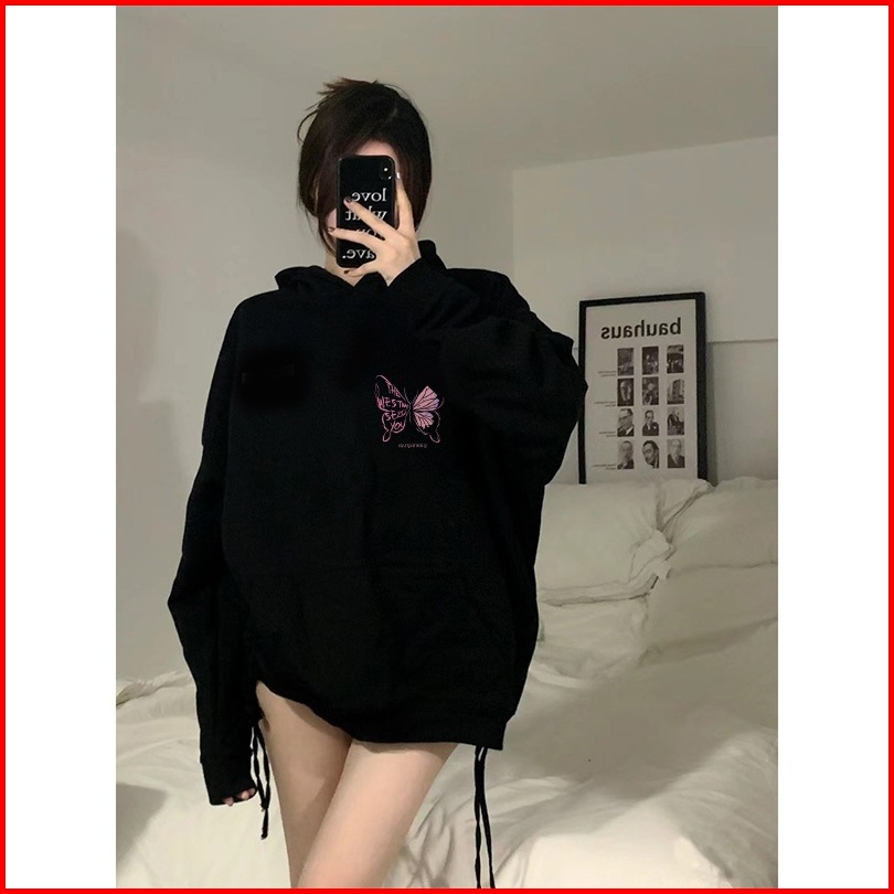 Sweatshirt Wanita Korean Style Lengan Panjang Hoodie Kupu Kupu Butterfly Import Kekinian Oversize Street Style Hoodie Pu