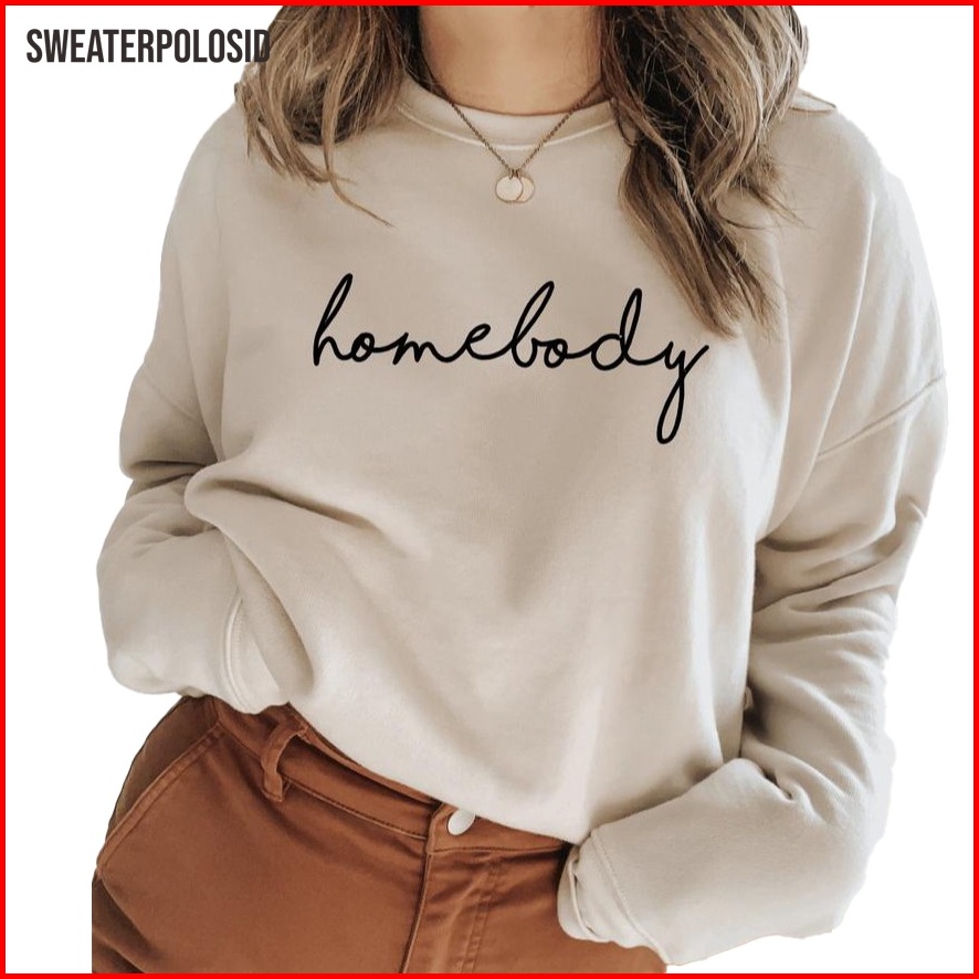 Swepo Basic Sweater Homebody Bordir M-xxl Pria Wanita