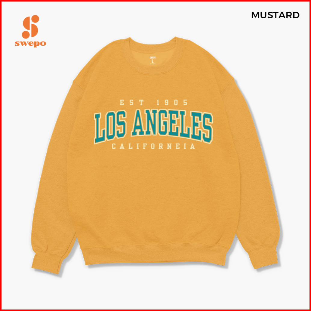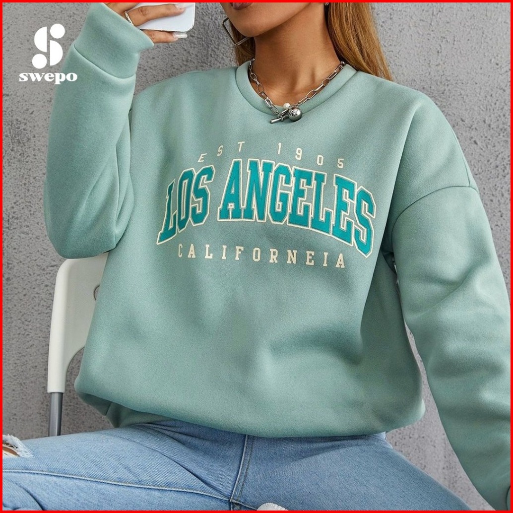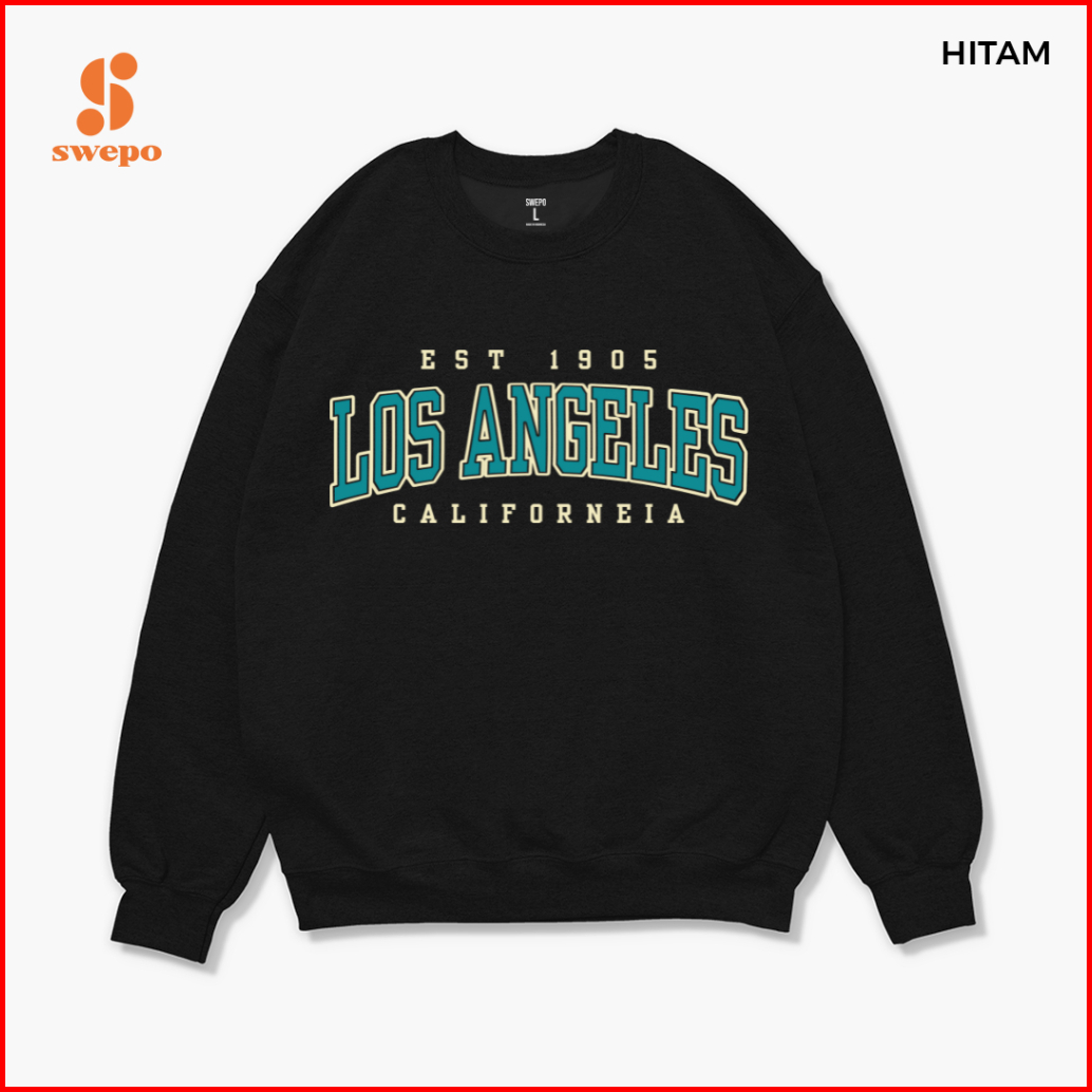 Swepo Basic Sweater Los Angeles Bordir Size M-xxl Pria Wanita
