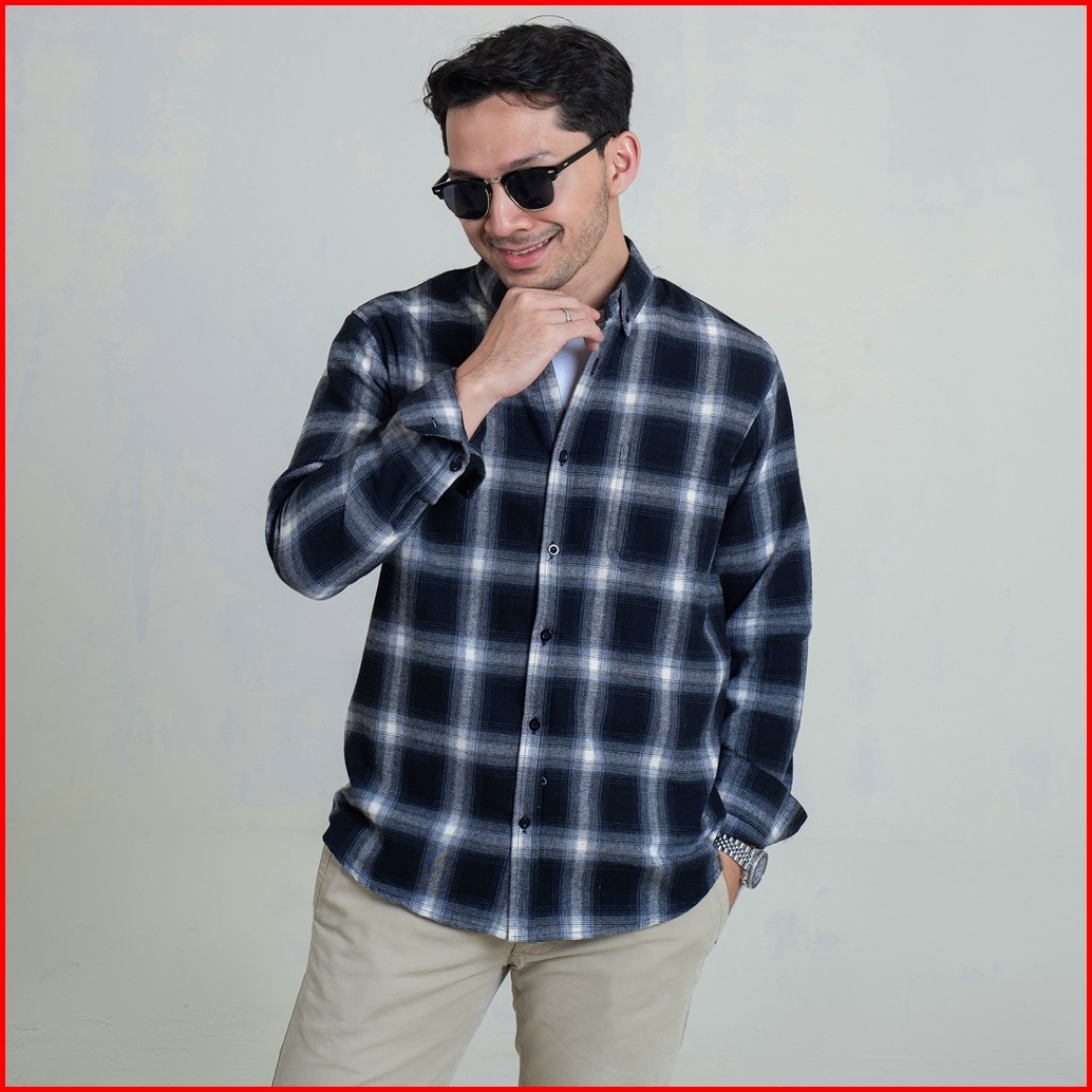 Kemeja Flanel Pria Woodcutter Black Raptors Flannel Shirt Lengan Panjang Veterano