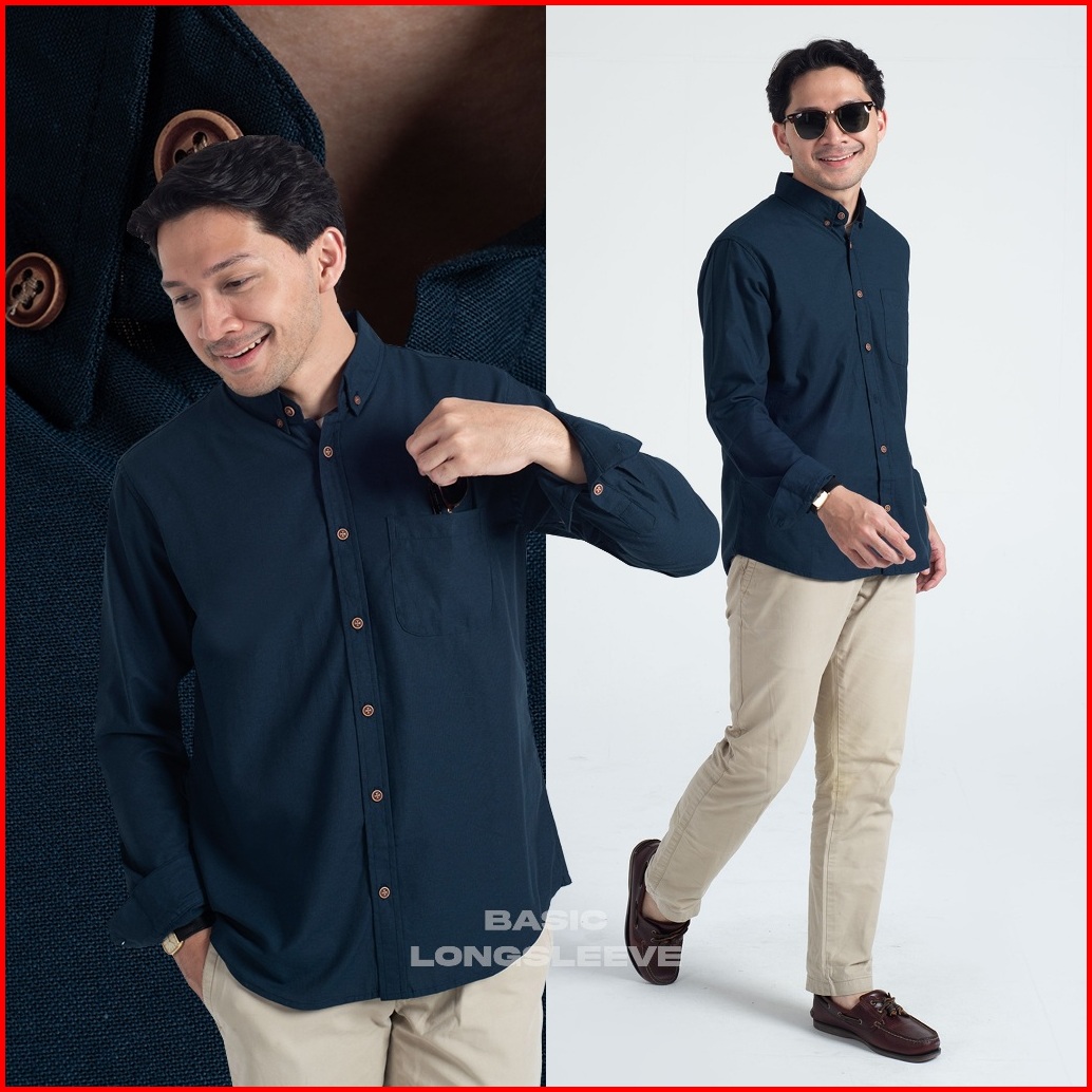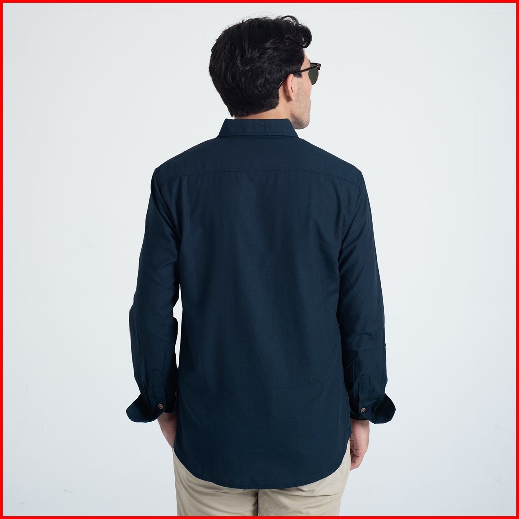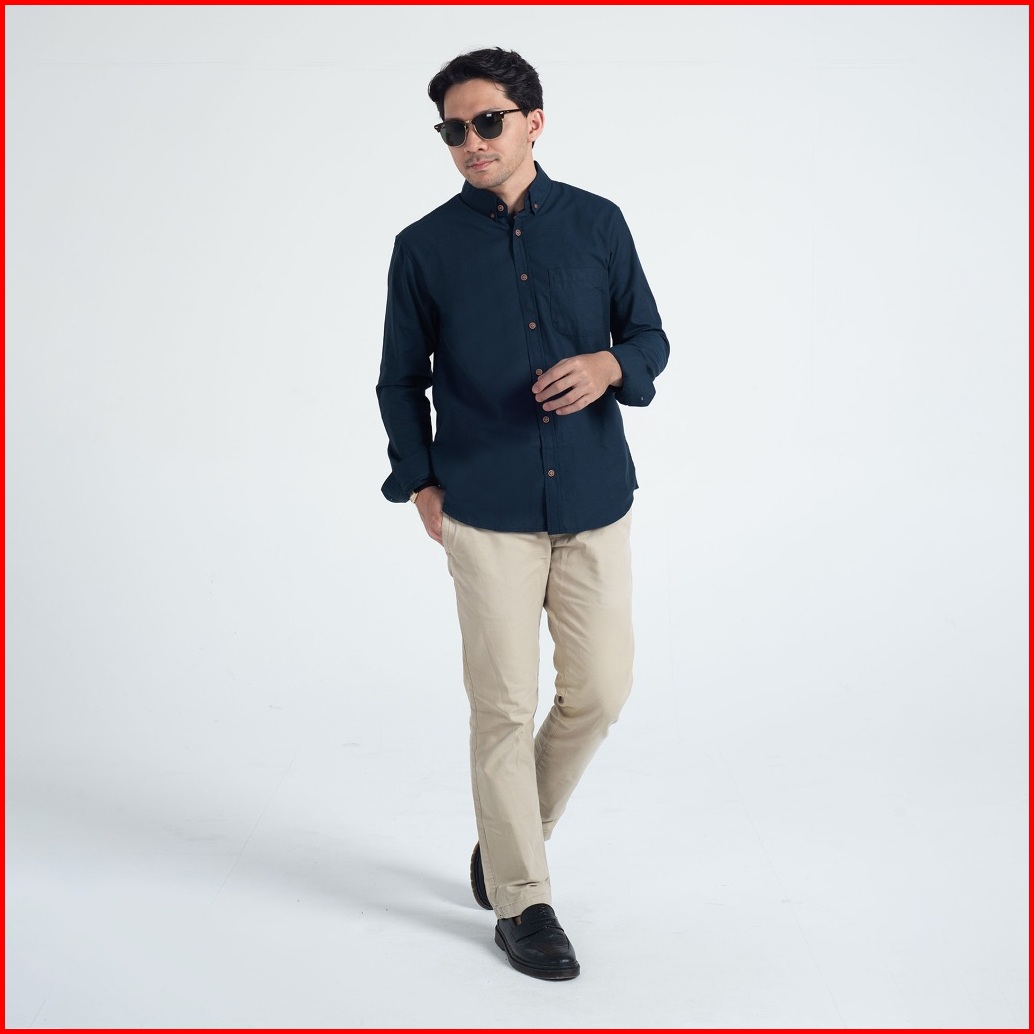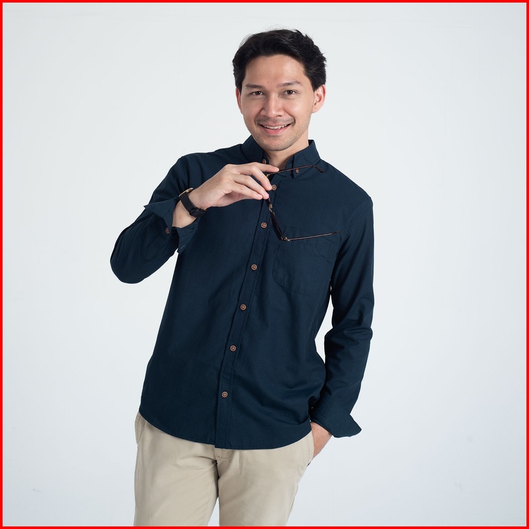 Kemeja Polos Pria Oxford Woodcutter Basic Shirt - Navy Blue Longsleeve Lengan Panjang